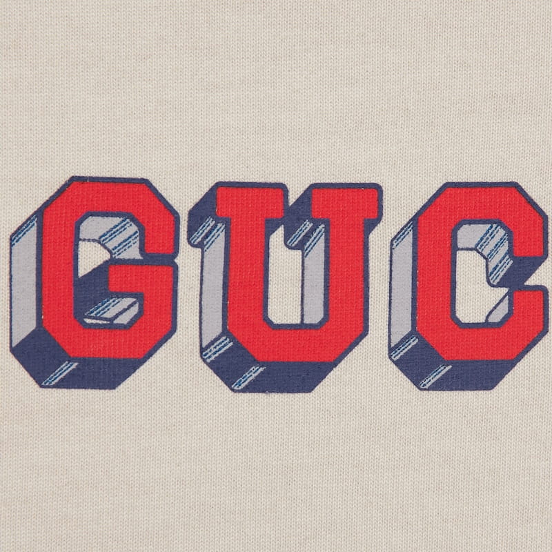 A relaxed attitude speaks volume as casual pieces become indispensable. Sweatshirts, hoodies, and t-shirts are adorned with signature embellishments. This T-shirt is crafted from ivory heavy cotton jersey and features the Gucci print.
