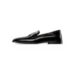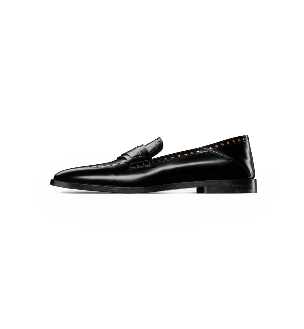 Featured at the Spring-Summer 2024 Fashion Show, the Dior Boy loafer offers a refined take on classic codes. The black calfskin upper has an almond-shaped toe and perforated details, while the vamp is accented by a gold-tone Christian Dior Paris signature. The foldable heel allows the shoe to be worn traditionally or as a mule.