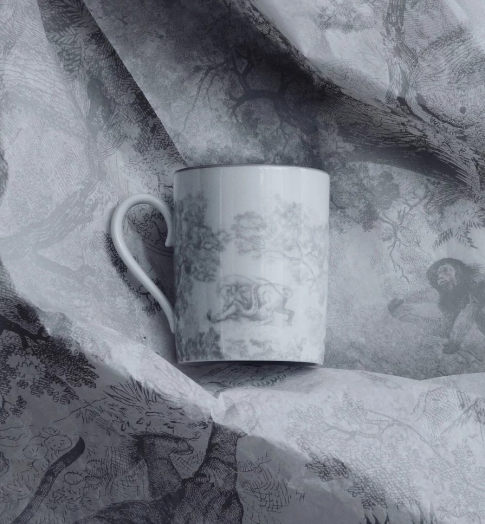 Mug crafted in extra fine Limoges porcelain with a hand-painted Toile de Jouy filet border. A timeless motif and House code cherished by Christian Dior, the Toile de Jouy is constantly reimagined and still adorns Dior Maison’s creations as a tribute to the founding couturier.