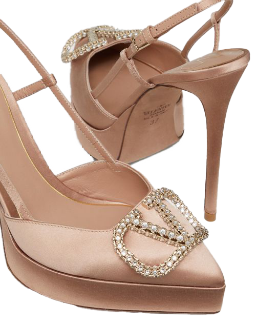 Valentino Garavani slingback platform pumps in satin with VLogo Signature decoration