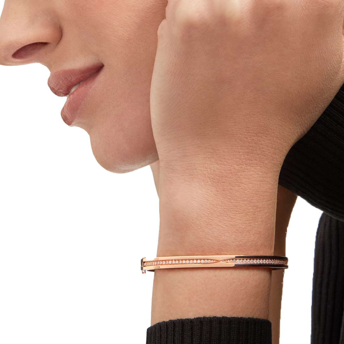 Drawing its inspiration from the most renowned amphitheater in the world, the Colosseum, B.zero1 is a groundbreaking statement of Bvlgari’s creative vision and a true icon of Italian design. Challenging the very essence of jewelry aesthetics, its distinctive spiral is a metaphor for the harmony of past, present and future – reflected in the magnificence of the Eternal City – and the emblem of the pioneering spirit of the collection. B.zero1 bracelet in 18 kt white gold with pavé diamonds.