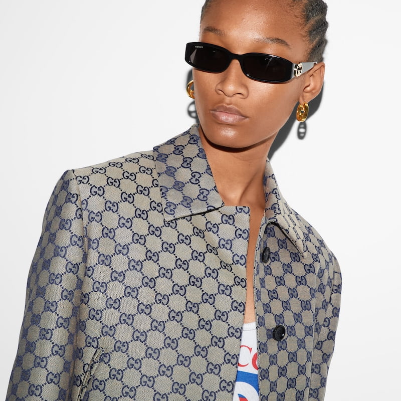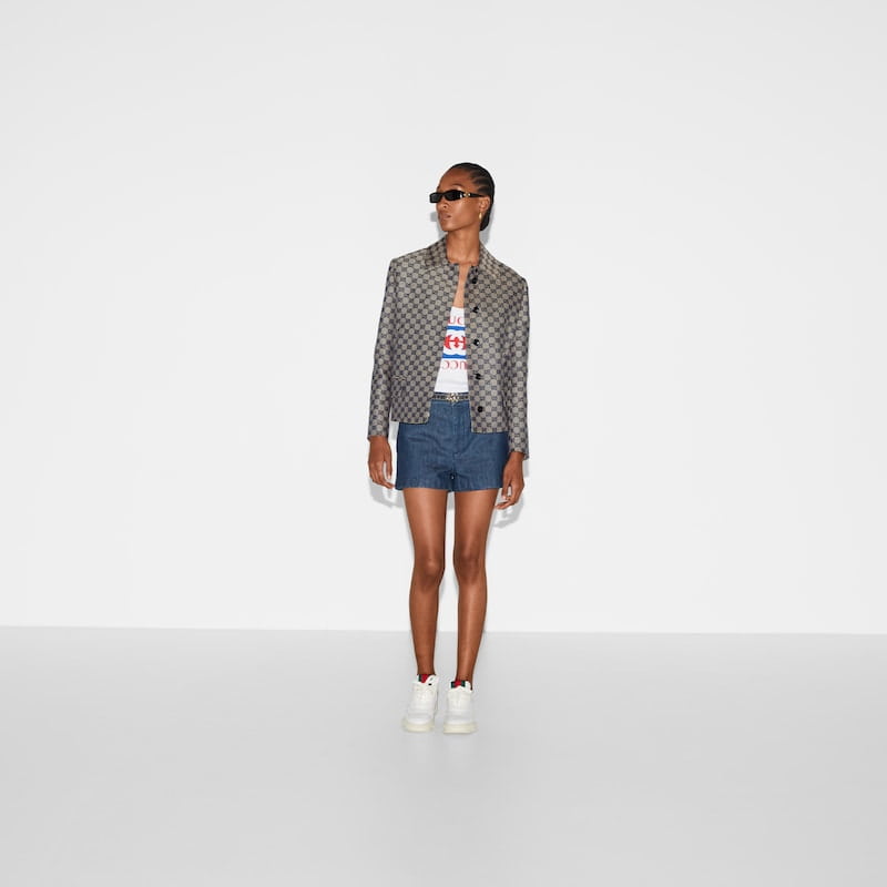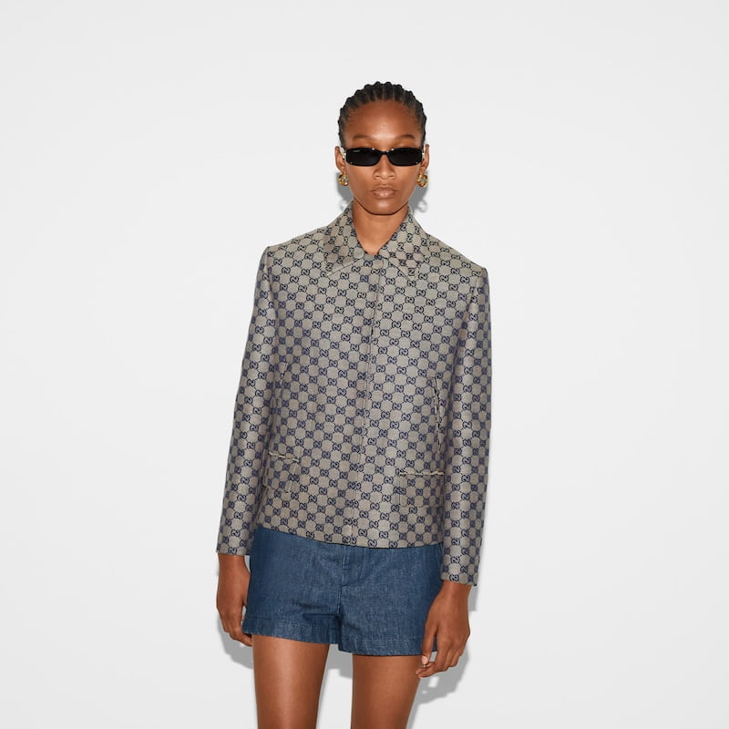 Inspired by the summer spirit and beach clubs on the Italian coast, this item is part of Gucci Lido. Emblematic codes of the House and refined patterns are reinterpreted in contemporary ways for the Pre-Fall collection. The contemporary silhouette of this linen canvas jacket is brought to life with a striking GG pattern, exploring new interpretations of Guccio Gucci’s instantly recognizable monogram.