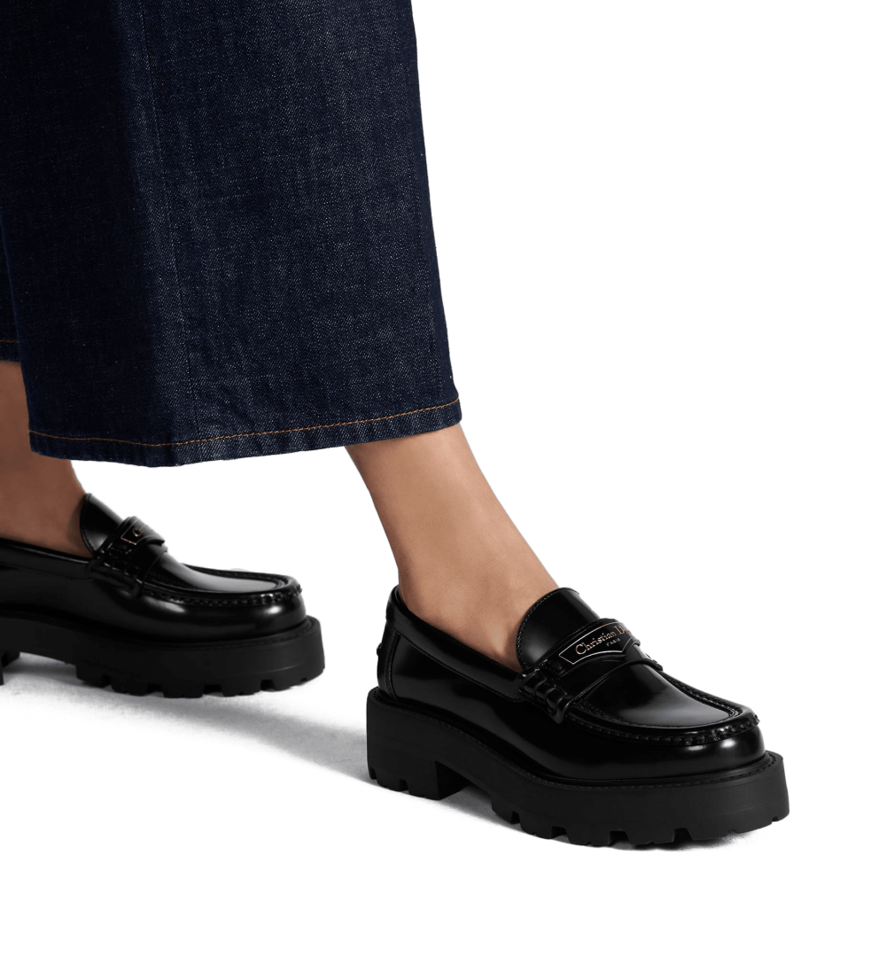 The Dior Boy platform loafer reinterprets a timeless style with the House’s exceptional savoir-faire. Crafted in black brushed calfskin, it showcases a gold-tone Christian Dior Paris signature on a leather tag in the front. Featuring a thick black EVA sole, the loafer is a supple and comfortable creation.