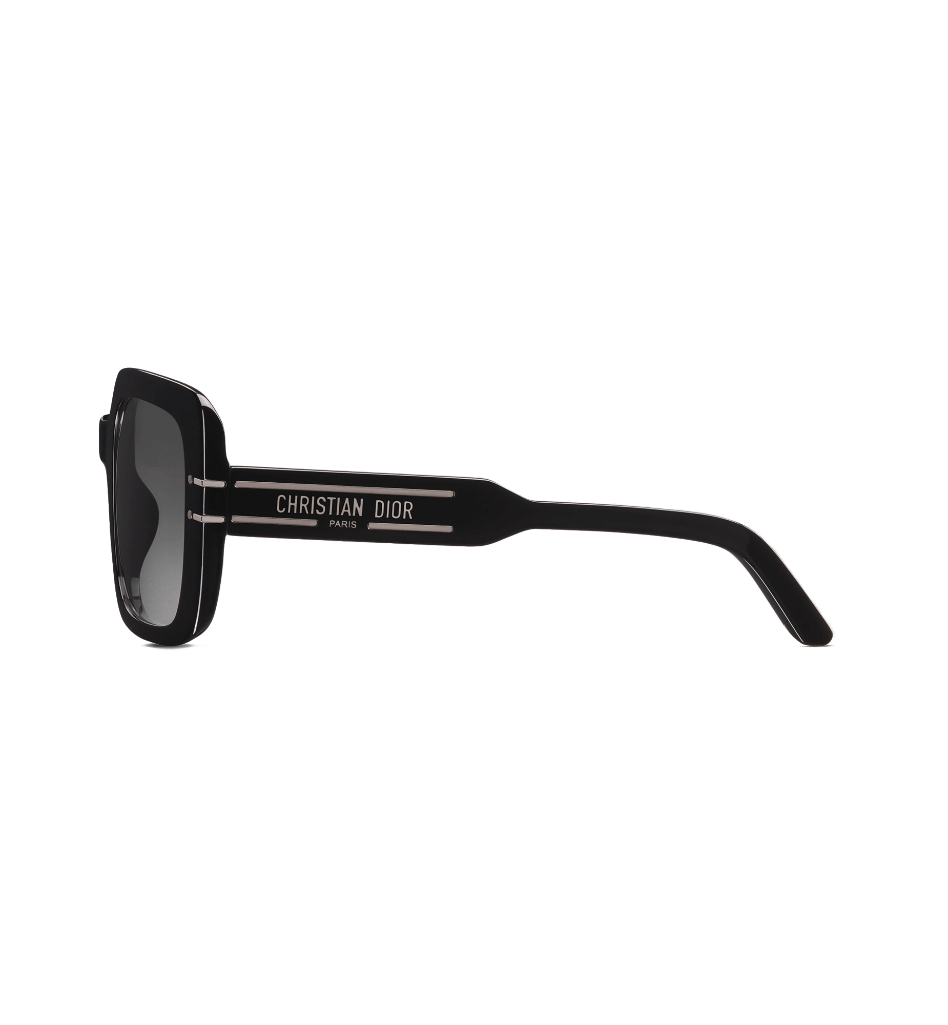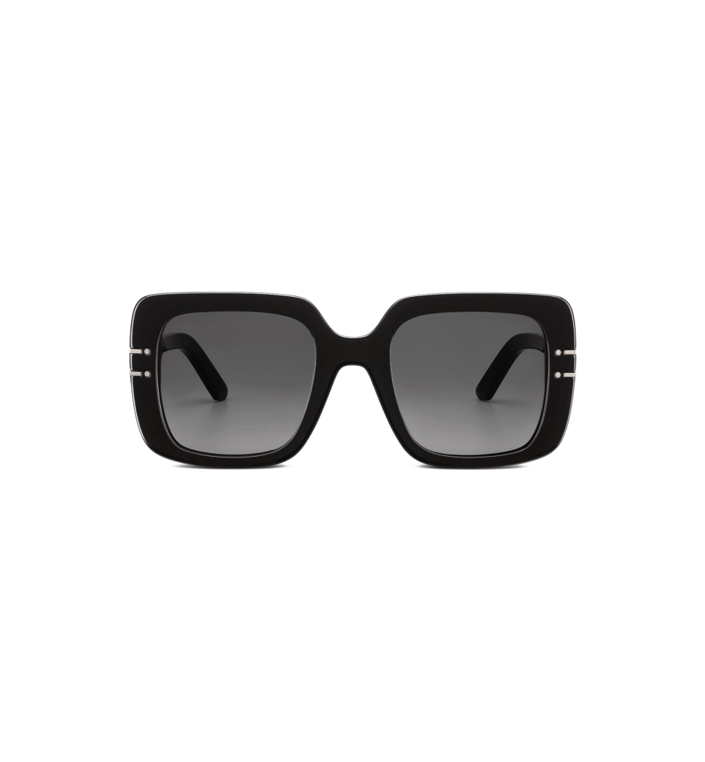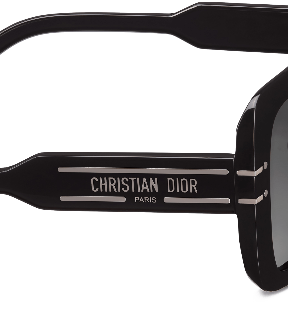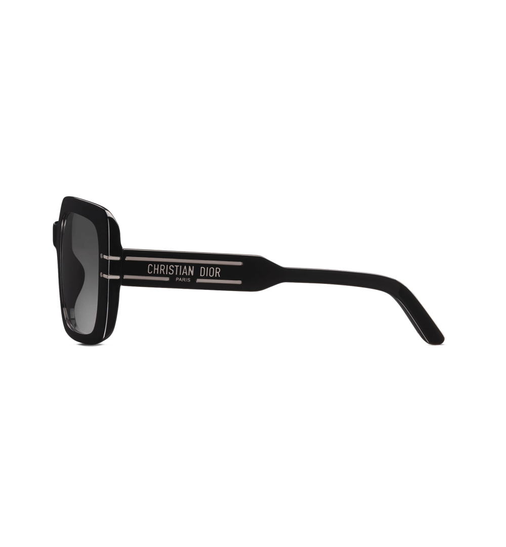 The DiorSignature S11I sunglasses enhance the now iconic House line with a contemporary and elegant square shape. The black acetate frame showcases the Christian Dior Paris signature embellished with ruthenium-finish metal lines that extend onto the front. Completed by gradient gray lenses, the modern sunglasses will lend a decisively Dior style to any look.