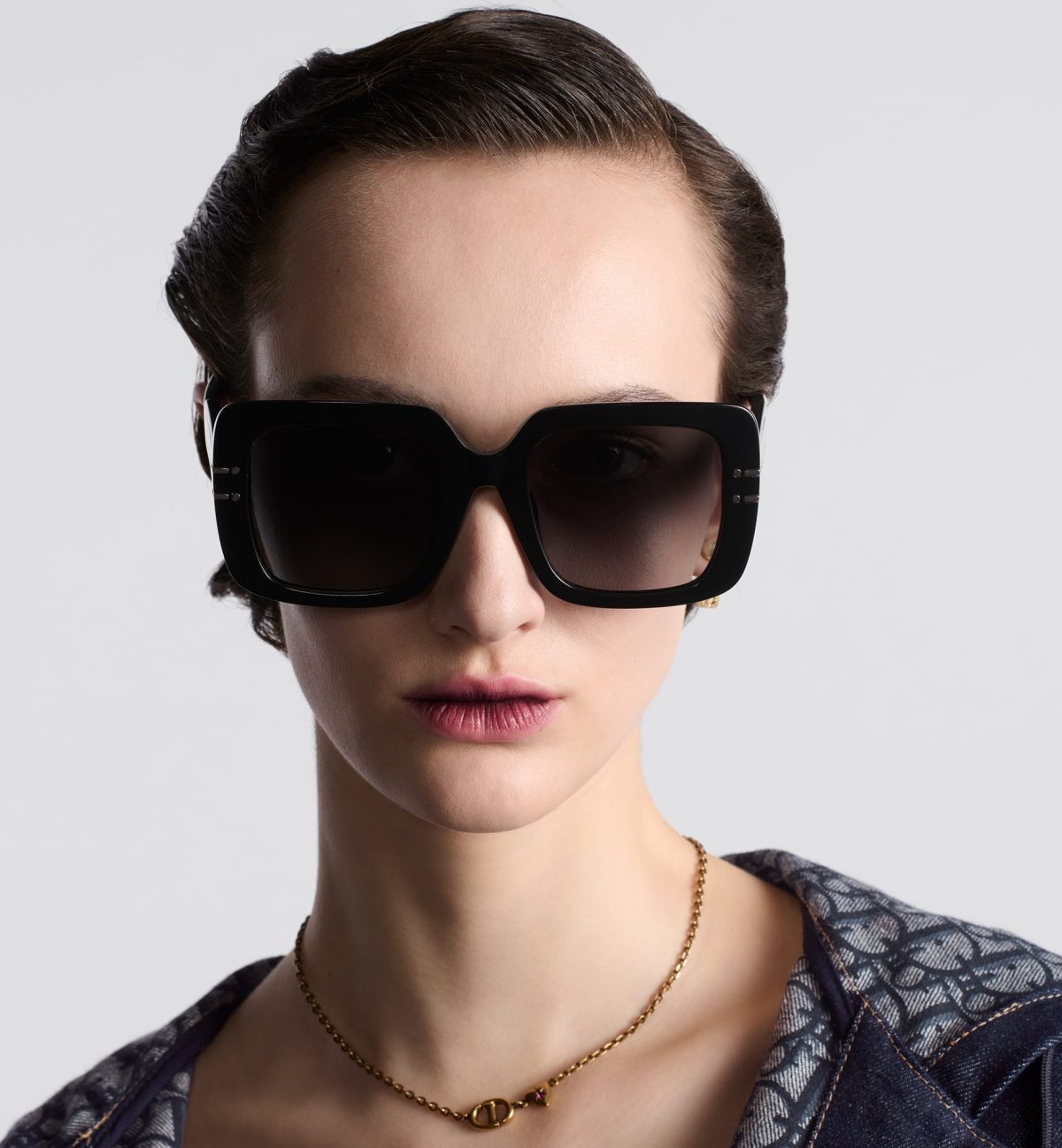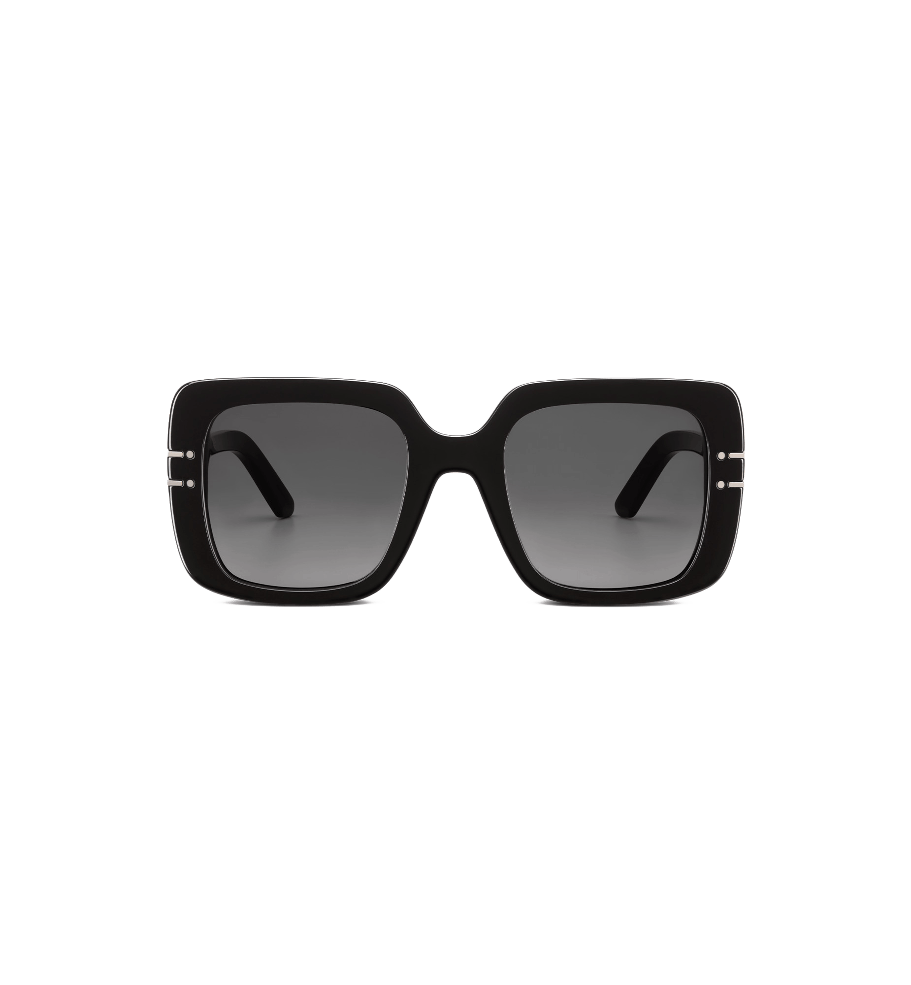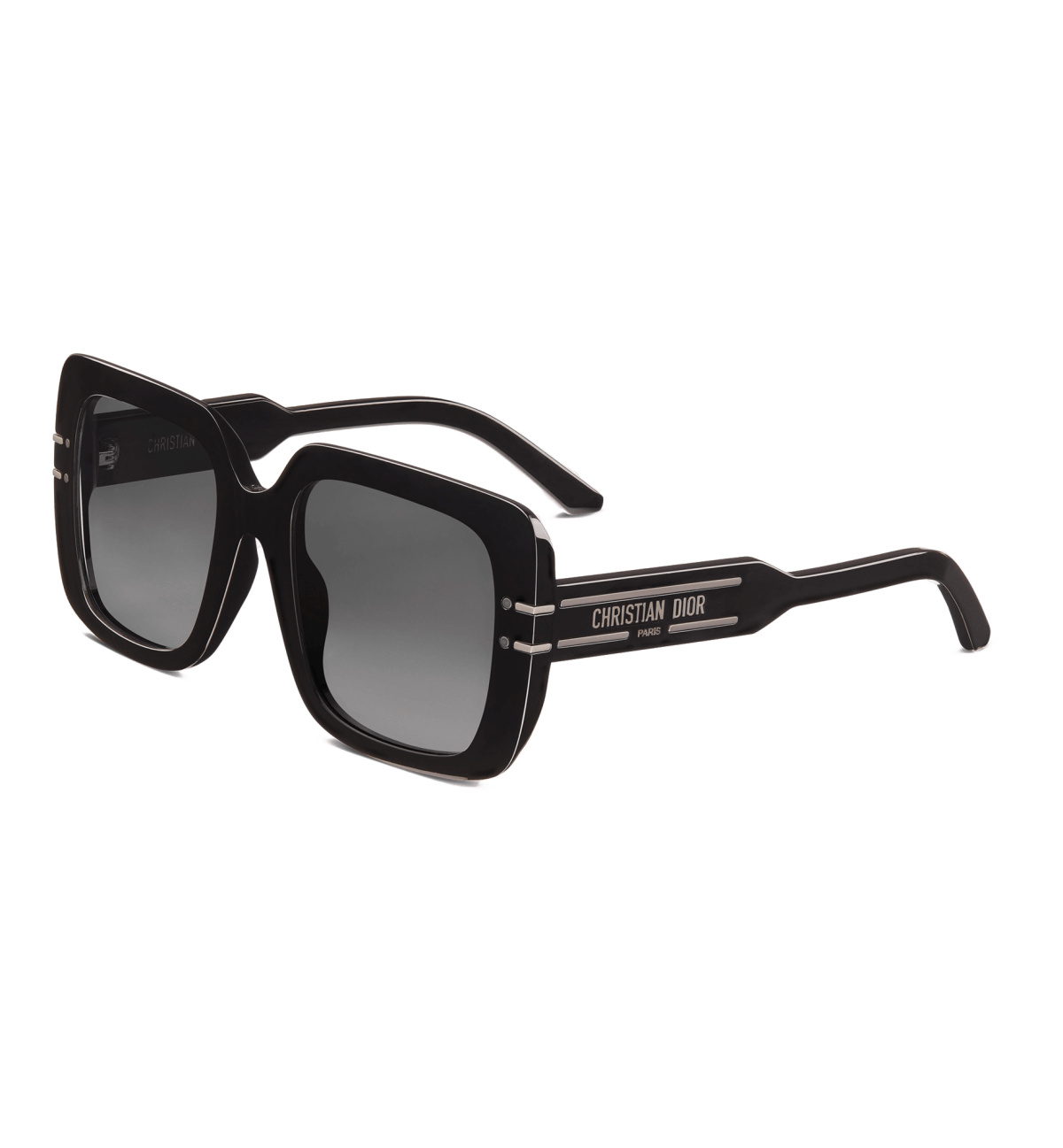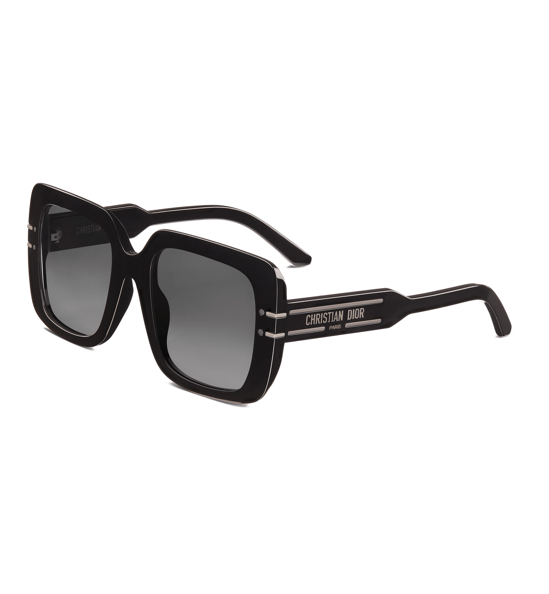The DiorSignature S11I sunglasses enhance the now iconic House line with a contemporary and elegant square shape. The black acetate frame showcases the Christian Dior Paris signature embellished with ruthenium-finish metal lines that extend onto the front. Completed by gradient gray lenses, the modern sunglasses will lend a decisively Dior style to any look.