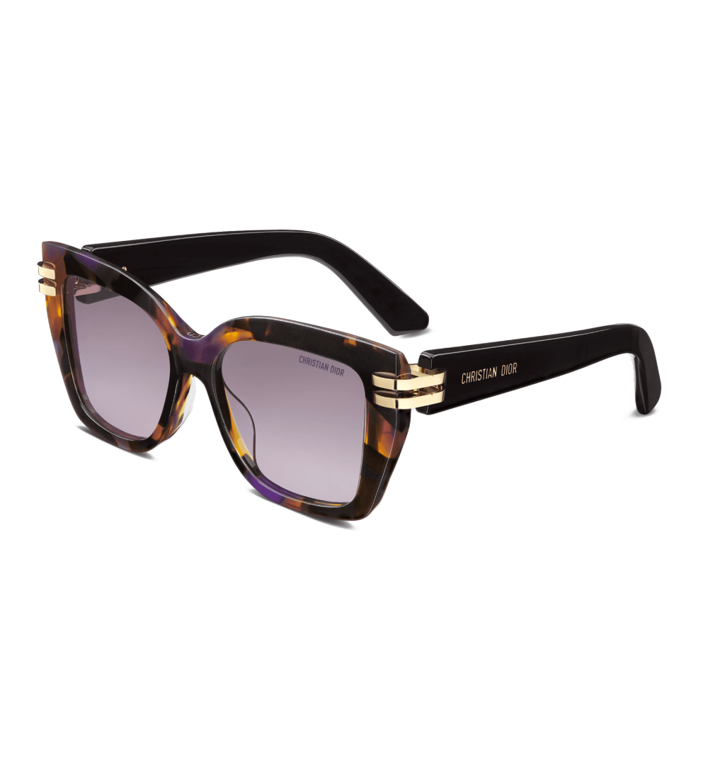 The CDior S1I sunglasses offer a new, urban take on the House’s CD signature. Crafted in black, purple and yellow feather-effect acetate, the square frame is enhanced by a gold-finish metal CD hinge inspired by the 30 Montaigne jewelry collection. The glamorous style is completed by purple gradient lenses and will elevate any look with a modern touch.