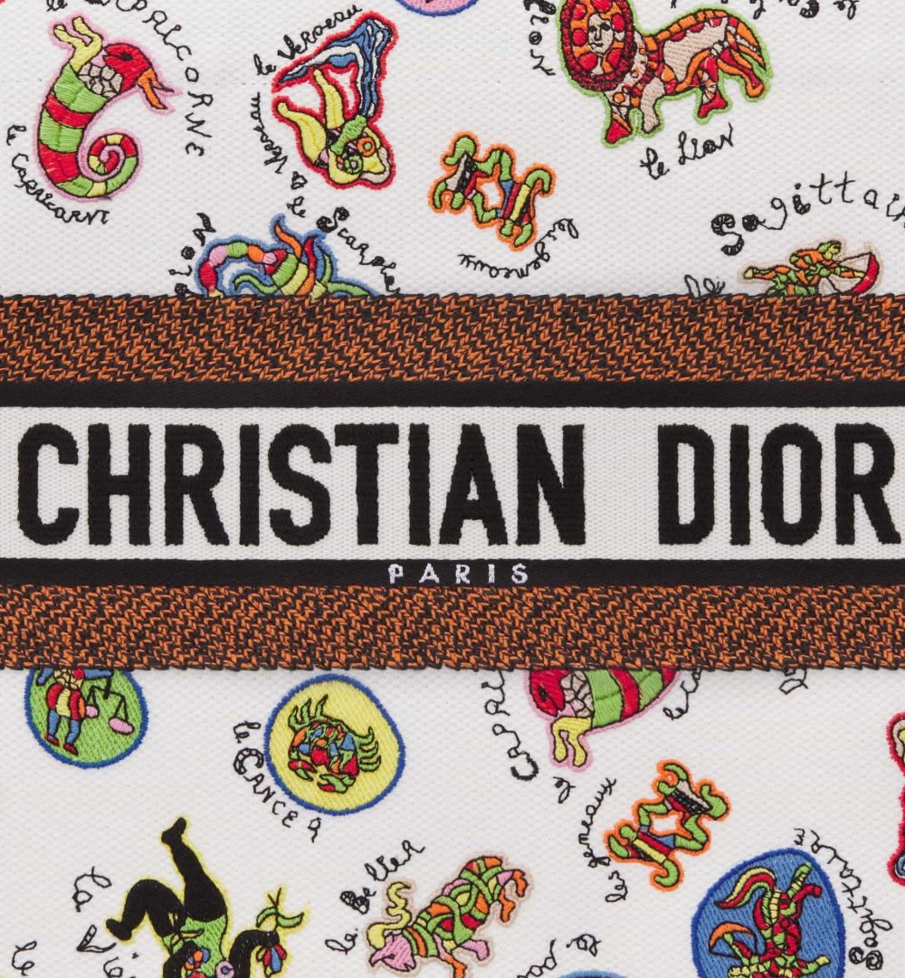 Introduced by Maria Grazia Chiuri, Creative Director of Christian Dior, the Dior Book Tote has become a staple of the Dior aesthetic. Designed to hold all the daily essentials, the style is fully embroidered with an allover Dragon Zodiac motif, a signature of the colorful Niki de Saint Phalle capsule collection. Enhanced by a Christian Dior Paris signature on the front, the medium tote exemplifies the House’s signature savoir-faire and may be carried by hand or worn over the shoulder.