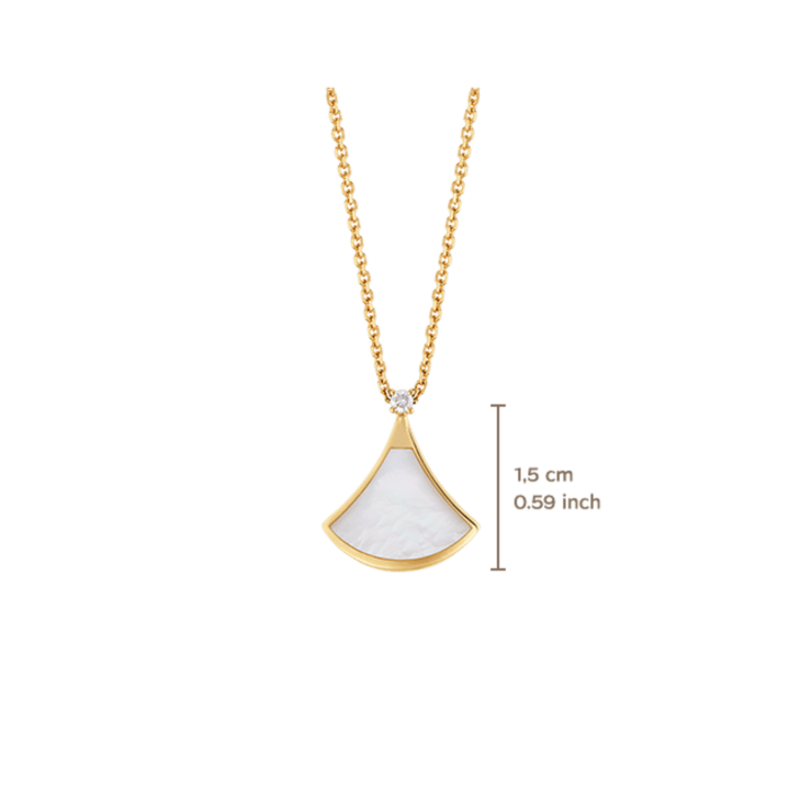 Inspired by feminine elegance and by the enchanting allure of the Eternal City, the Divas’ Dream necklace pays homage to the most glamorous divas with an unmistakable Roman spirit. Quintessentially feminine and refined, the necklace is sculpted in a way that captures the magnificence of the Baths of Caracalla’s marble and the sensual curves of its fan-shaped mosaics, reflecting the very essence of Italian beauty. Divas’ Dream necklace in 18 kt yellow gold with pendant set with one diamond and mother-of-pearl. 16-17 in (41-43 cm) long.