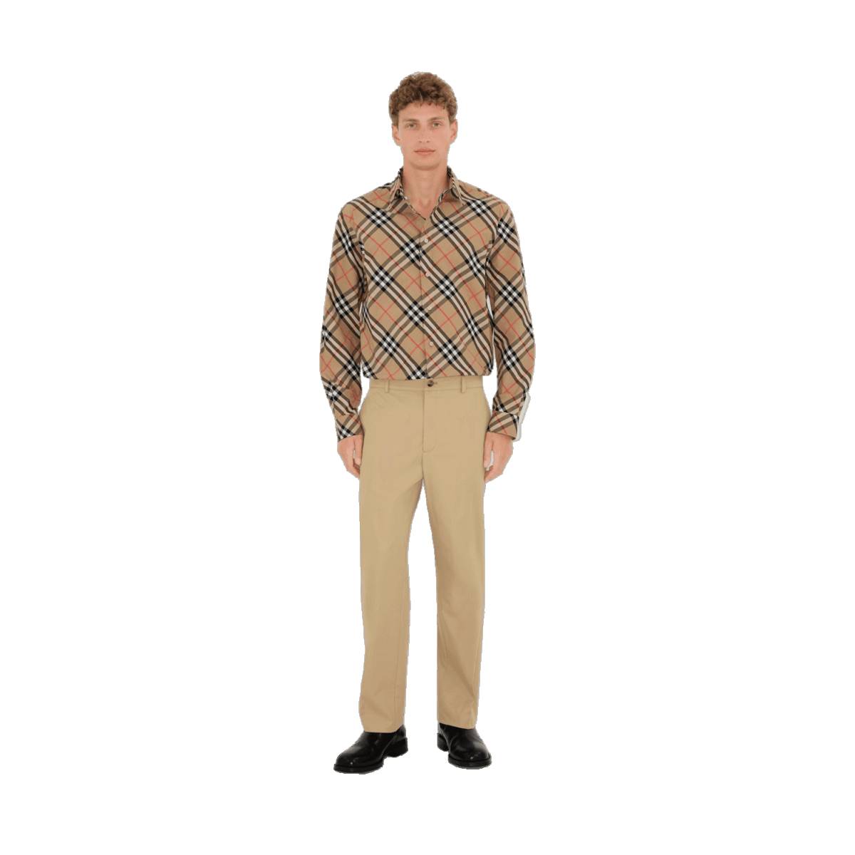 • A long-sleeved shirt in cotton poplin, woven in Italy with the Burberry Check. The design is tailored to a regular fit. Part of Burberry Classics, wardrobe foundations with a unique Burberry slant.