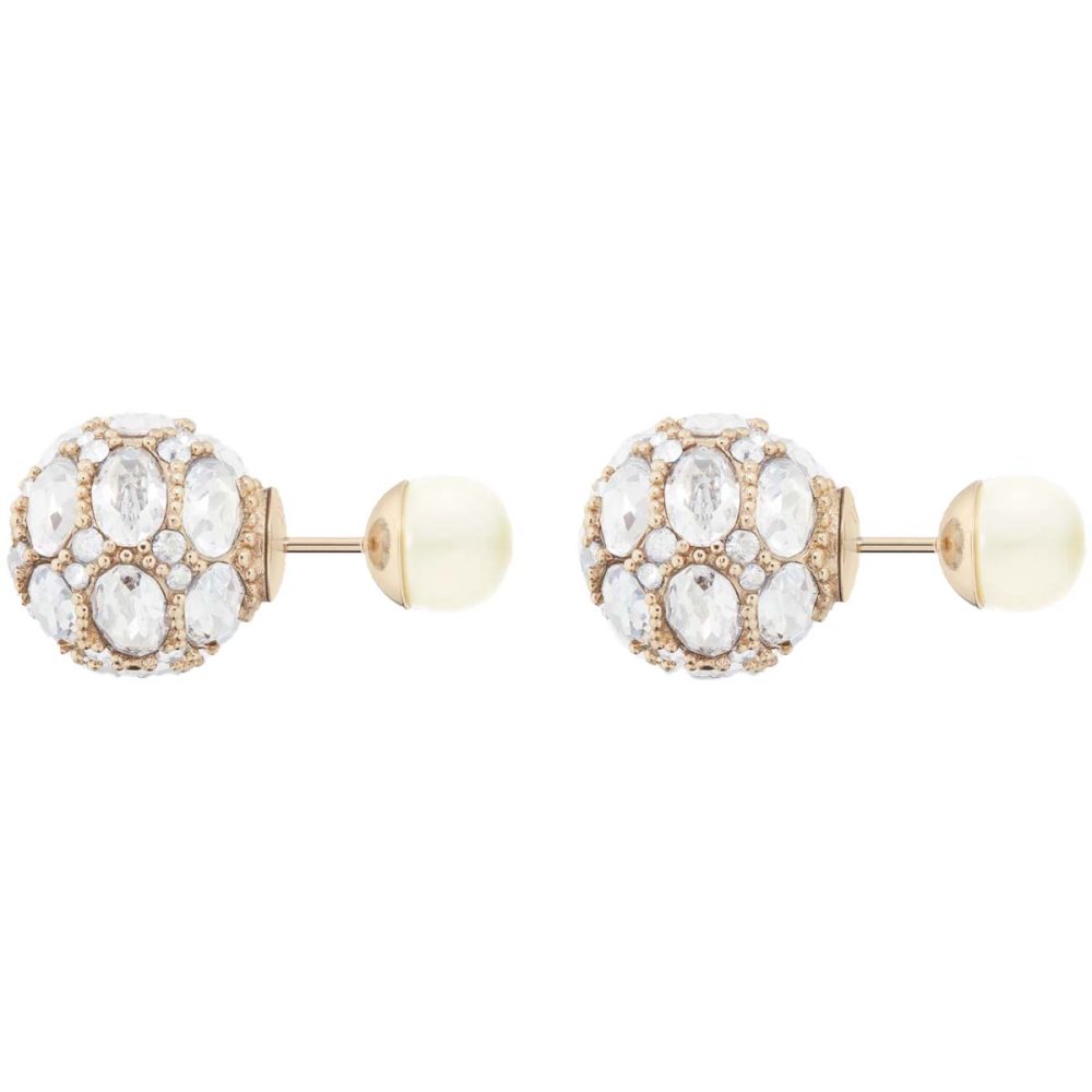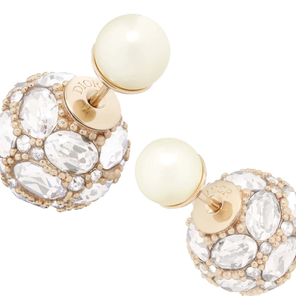The elegant and iconic Dior Tribales earrings pay tribute to the House’s exceptional savoir-faire. The hallmark resin pearls are accented by silver-tone faceted crystals in the back. The earrings will add a sophisticated and glamourous touch to any look.