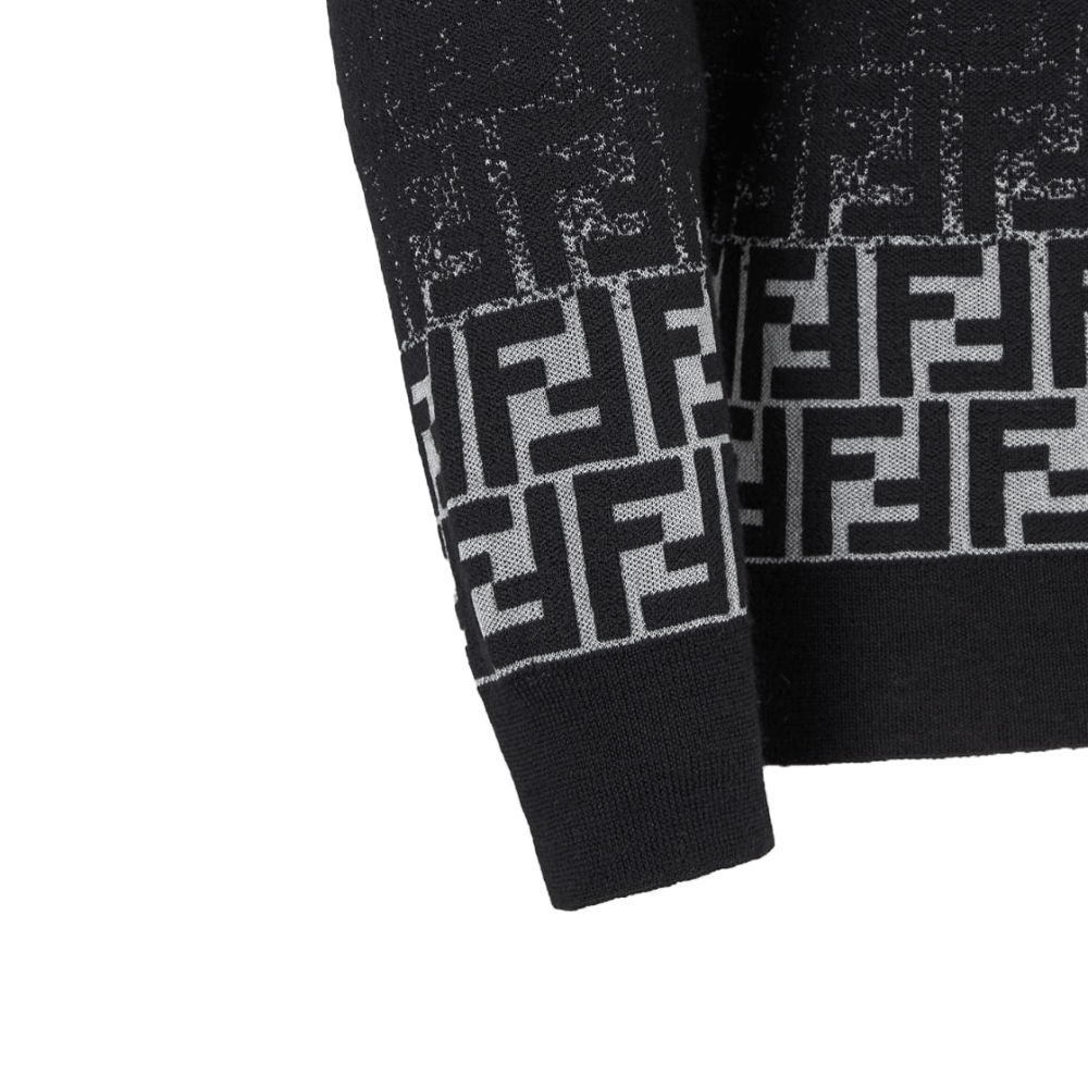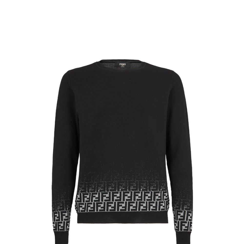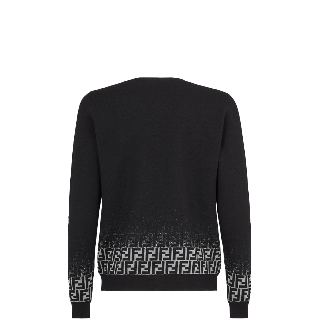 Black wool-blend faded FF motif jumper from FENDI featuring crew neck, long sleeves, ribbed cuffs, ribbed hem and faded FF motif.
