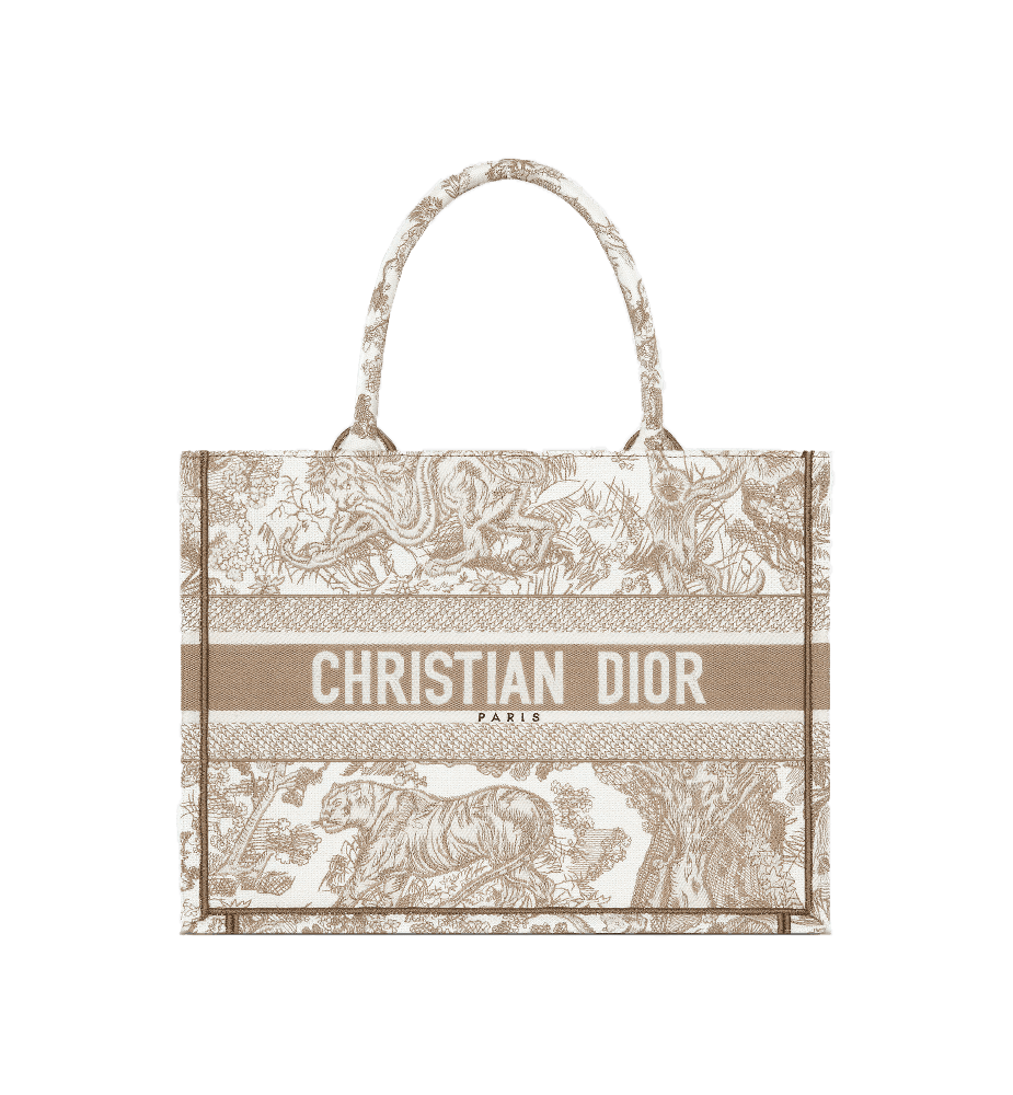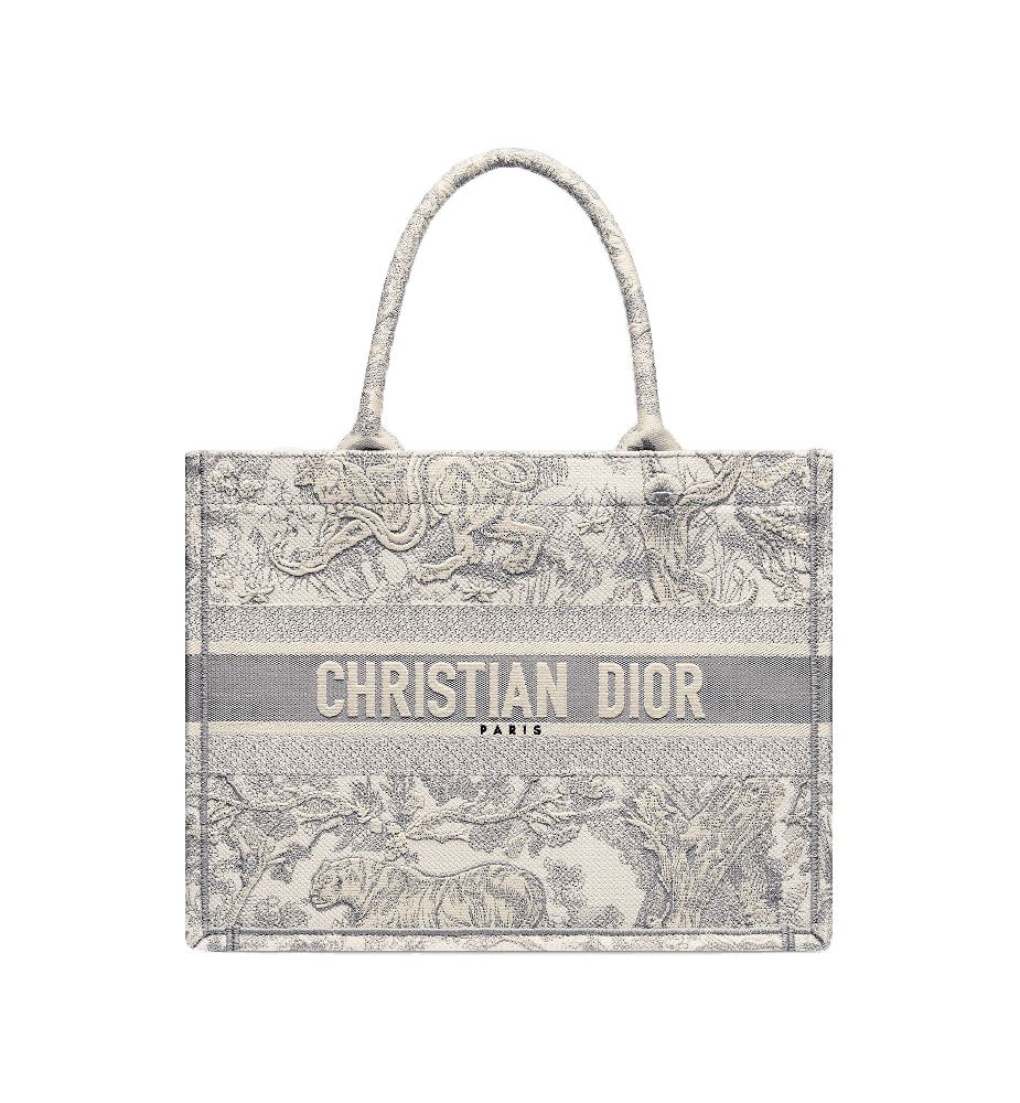 Introduced by Maria Grazia Chiuri, Creative Director of Christian Dior, the Dior Book Tote has become a staple of the Dior aesthetic. Designed to hold all the daily essentials, the style is fully embroidered with the ecru and blue Toile de Jouy motif enhanced by the Christian Dior Paris signature on the front. The medium tote exemplifies the House’s signature savoir-faire and may be carried by hand or worn over the shoulder.