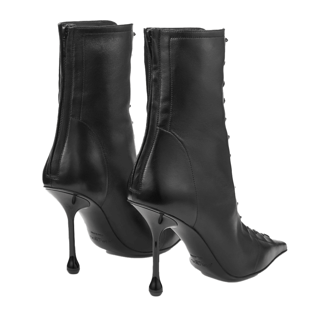 The Scarlett ankle boot is a timeless silhouette, elevated by our signature drop heel. The corset detail on the upper is carefully crafted by threading leather lace by hand, which is secured with an invisible stitch.