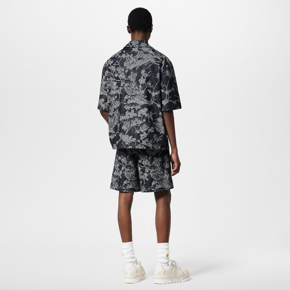 この半袖デニムシャツは、コレクションのトロピカルなサーファーの楽園にインスパイアされたLVウェーブジャカードで、洗練された雰囲気に仕上げられています。胸元のLVフラワー刺繍がルイ・ヴィトンのロゴにエキゾチックなひねりを加え、パールボタンがさらに個性を際立たせています。シンプルなこのアイテムは、お揃いのショートパンツと合わせて、グラフィカルな夏の装いに。