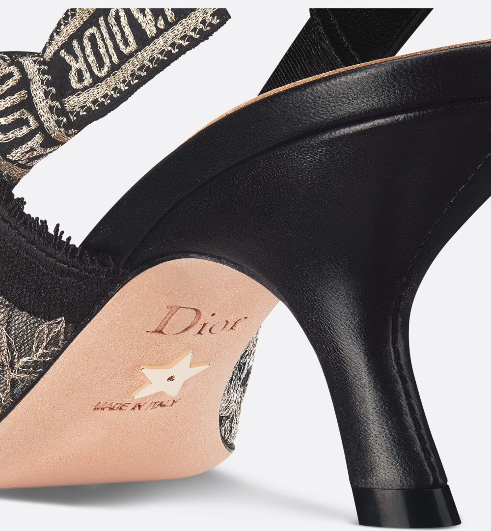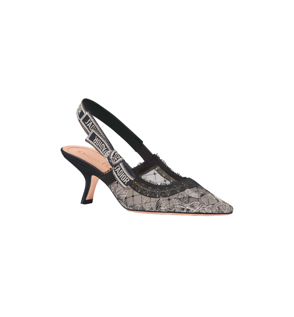 The J’Adior slingback pump is a prime example of the House’s savoir-faire. Offering a refined element of transparency, the mesh style is fully embroidered with metallic thread in a black and gold-tone Butterfly motif. The J’Adior two-tone embroidered ribbon, flat bow and 6.5 cm (2.5) comma heel complete the elegant and sophisticated accessory.