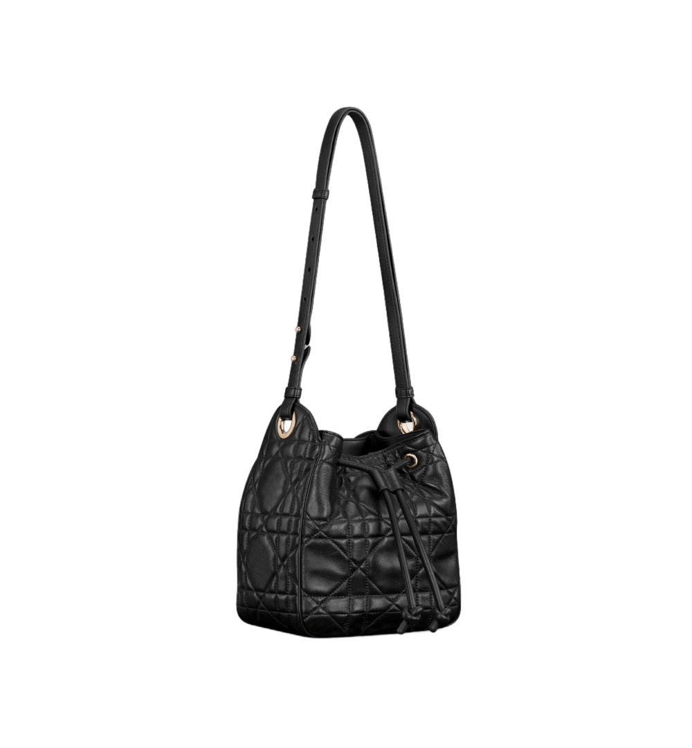 New for Winter 2025, the D-Motion bag is distinguished by a modern and practical bucket design. Crafted in ivory lambskin with Macrocannage stitching, the supple style features a drawstring closure that opens to reveal a spacious interior compartment with a zip pocket for all the essentials. Adorned with pale gold-finish metal D.I.O.R. charms, the small bag has an adjustable strap with a sliding design, allowing it to be worn on the shoulder or crossbody.