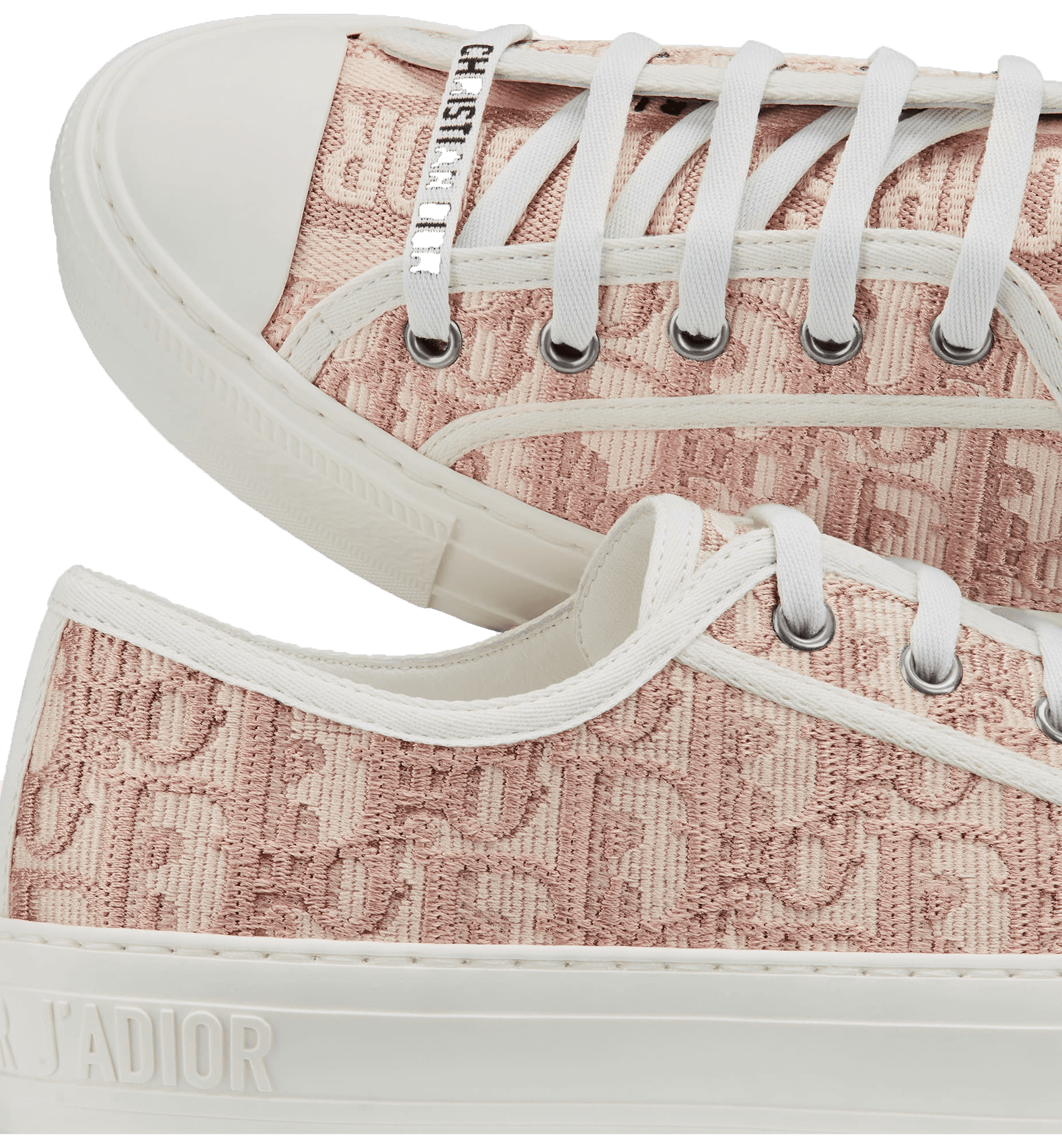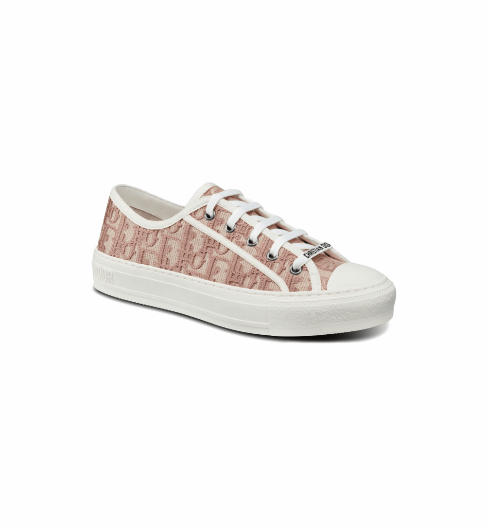 The Walk’n’Dior sneaker presents a nude embroidered cotton Dior Oblique motif. Its relaxed design features signatures on the tongue, rubber sole and laces for a timeless look.