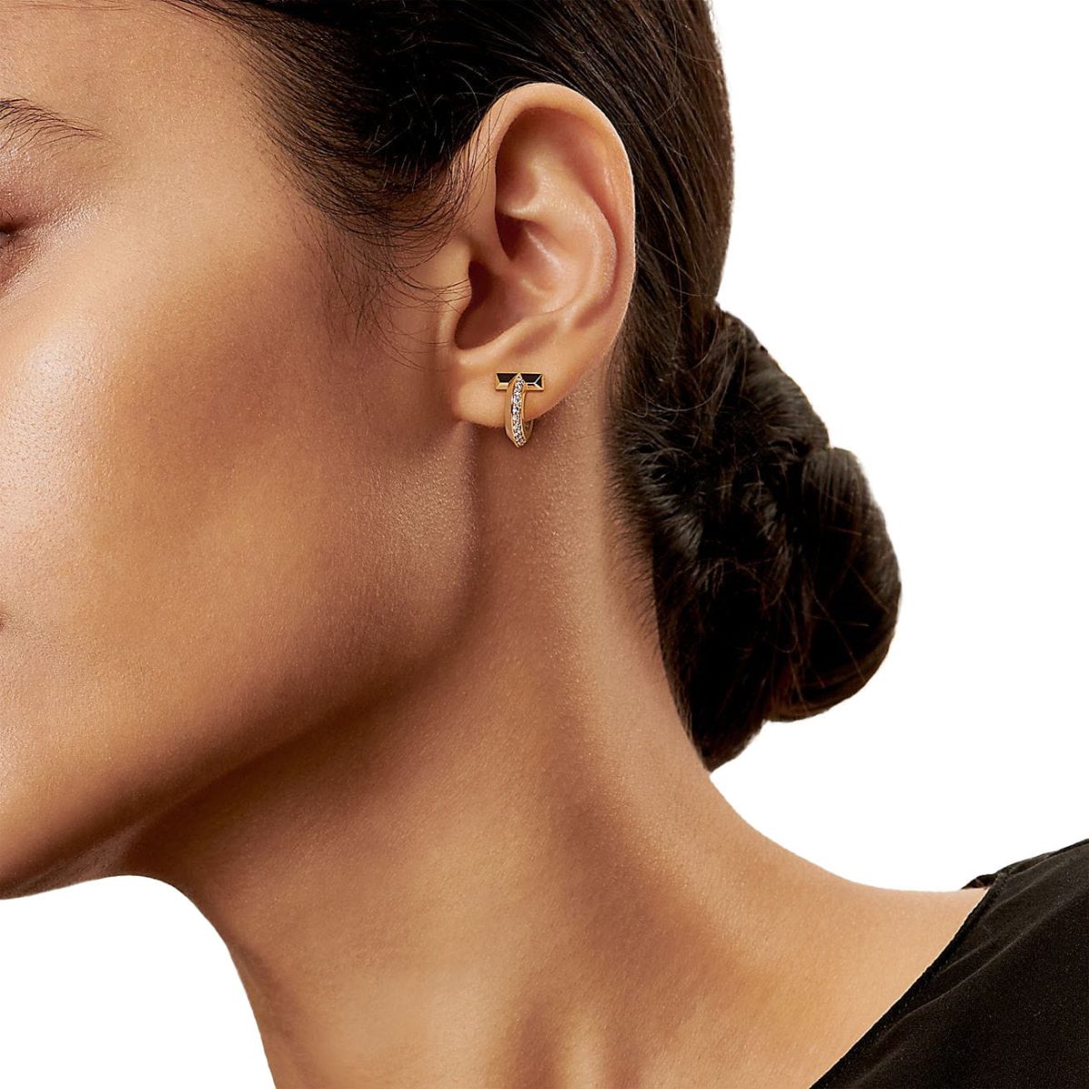Tiffany T is an expression of love’s endless potential. Inspired by an archival bracelet from 1975, T is an homage to the House’s iconic motif and the spirit of New York, which founder Charles Lewis Tiffany regarded as the place of promise and possibilities. These hoop earrings are precisely crafted in 18k yellow gold and feature a beveled edge traced with round brilliant diamonds. Wear on their own as a striking statement or style with a mix of stud earrings for an unexpected look.