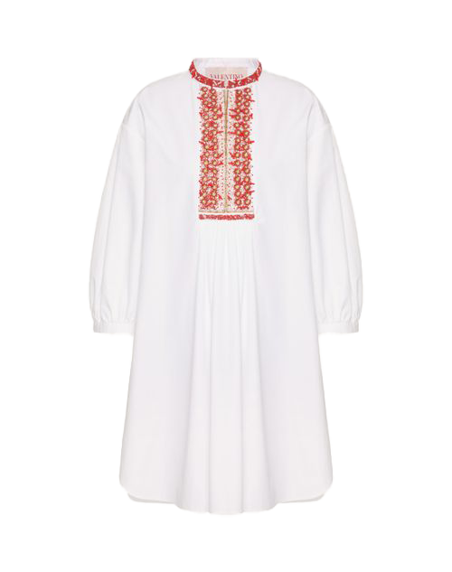 Embroidered Compact Popeline Short Dress