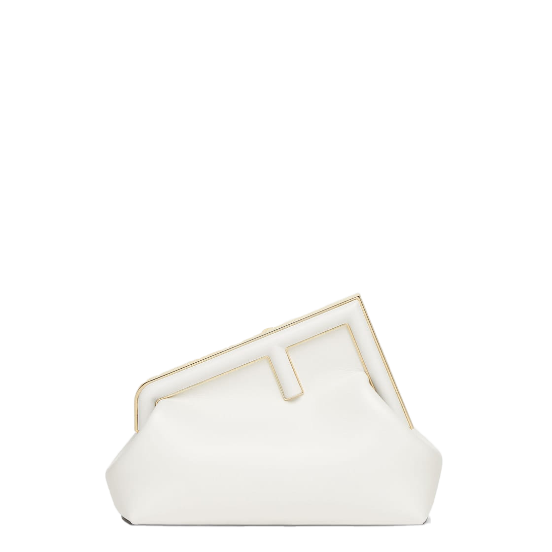 Fendi First bag in the perfect size for daytime, made of soft, white nappa leather, with oversized metal F clasp bound in tone on tone nappa leather.