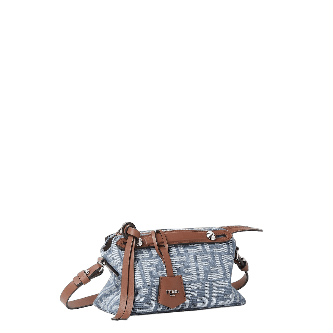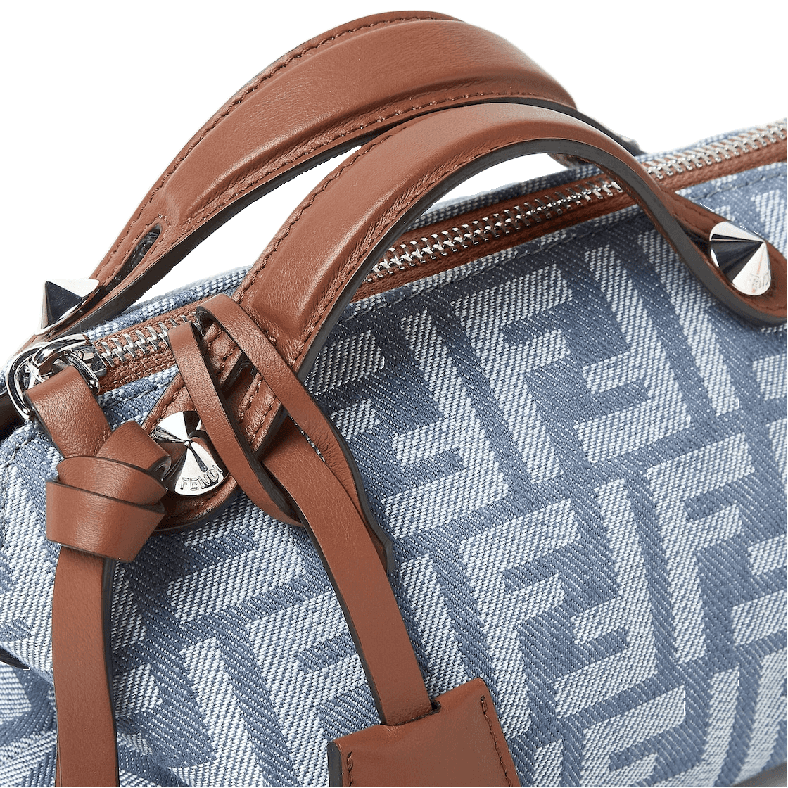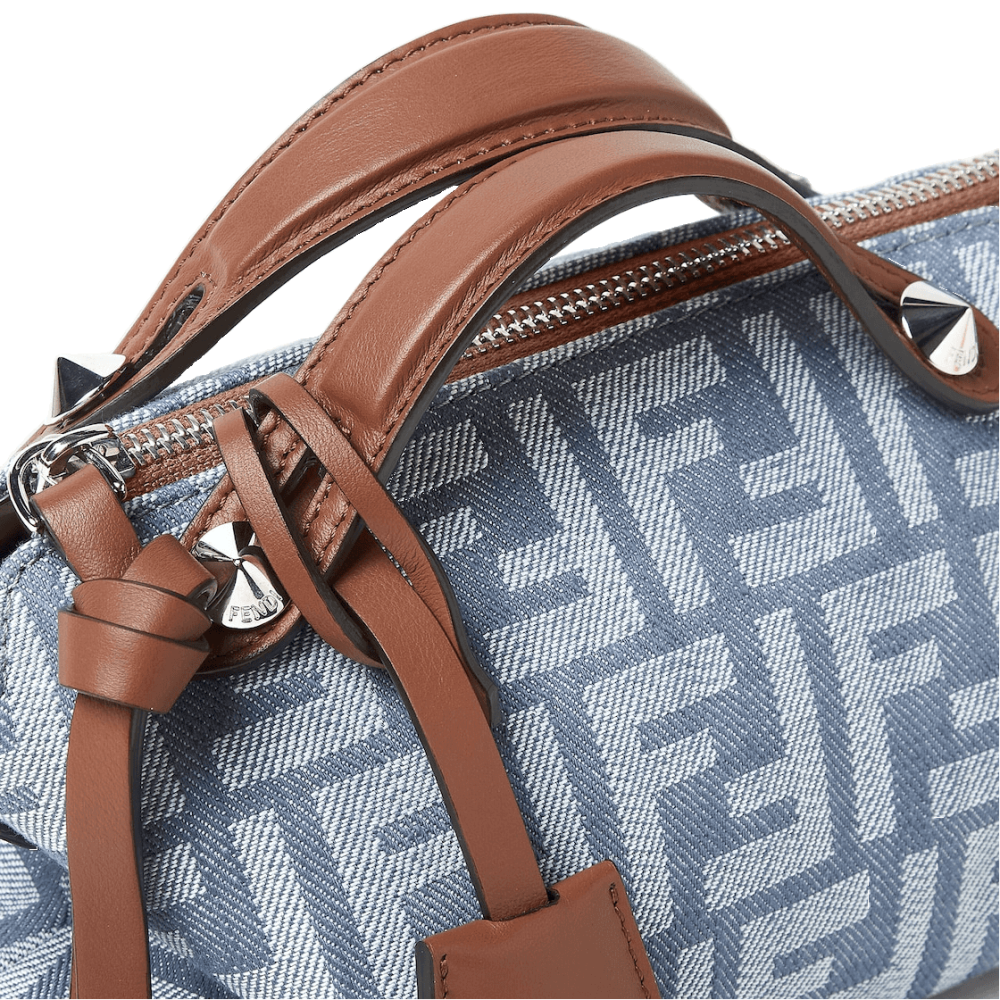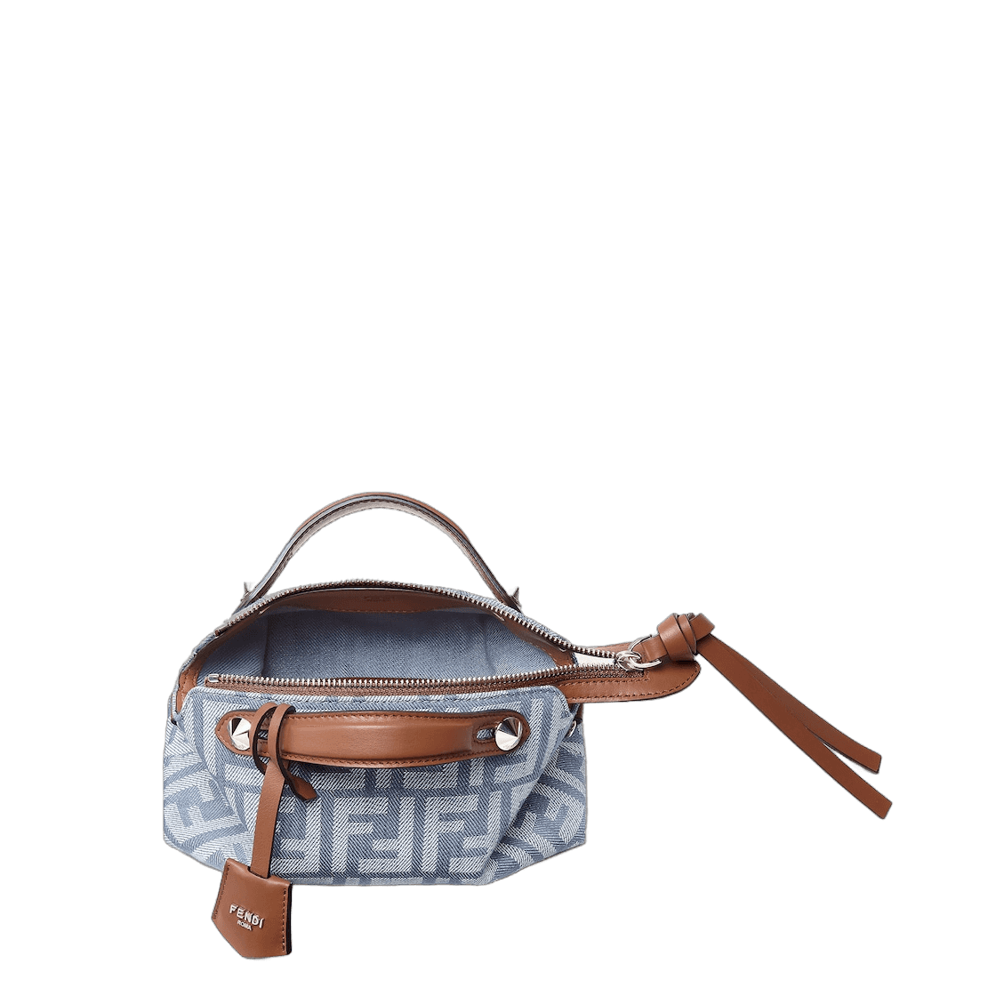 Made of blue denim-effect FF Jacquard with brown calfskin details.