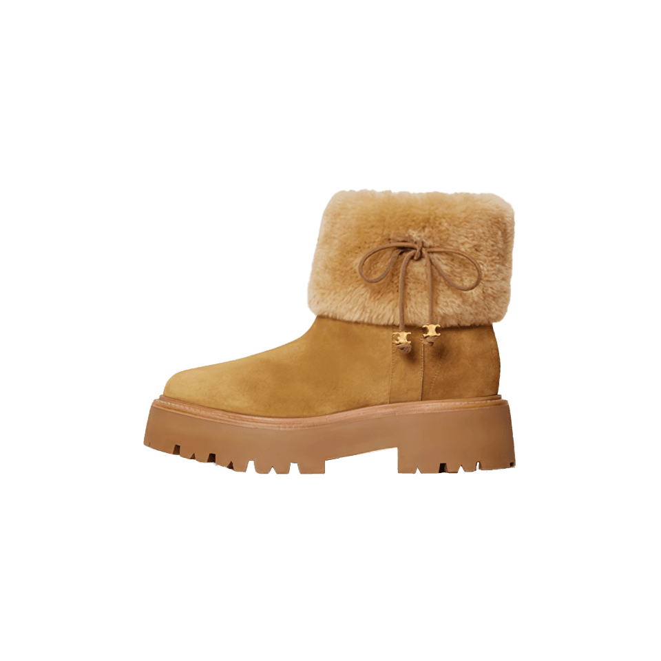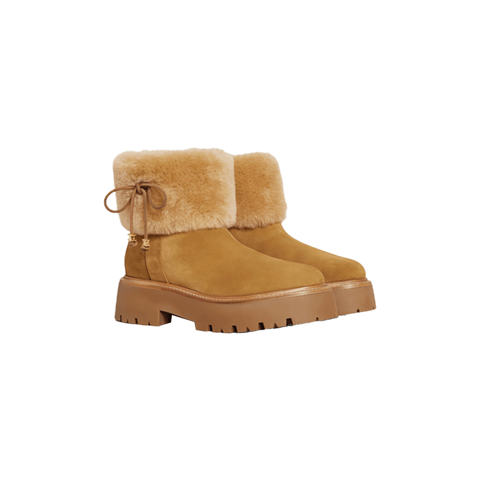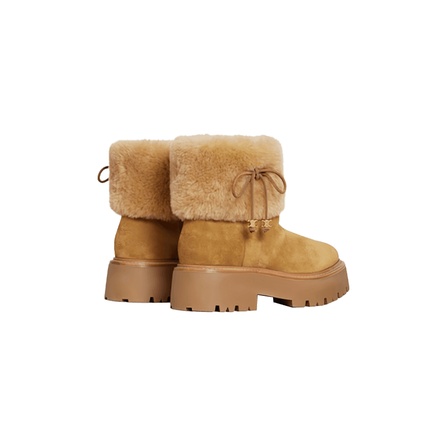 Celine Bulky Cropped Boot With Triomphe Tassels In Suede Calfskin And Shearling