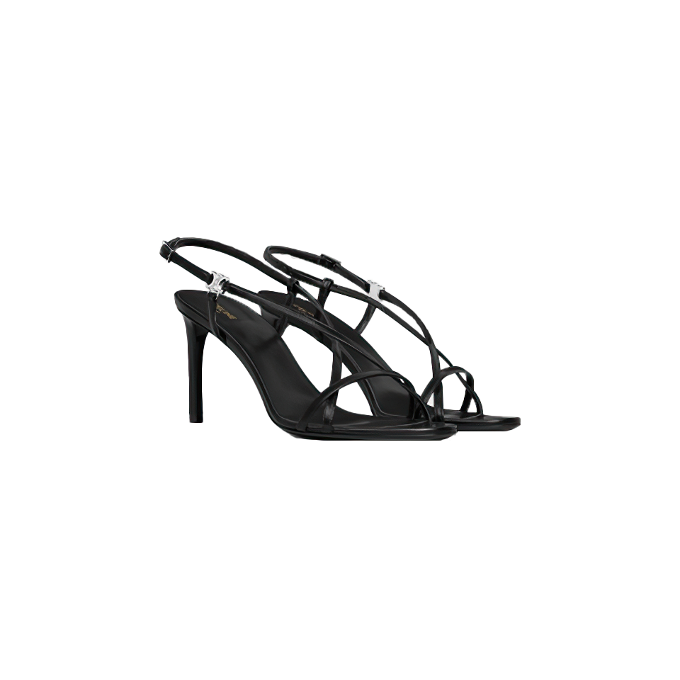 Celine Soir Criss Cross Sandal With Triomphe In Lambskin