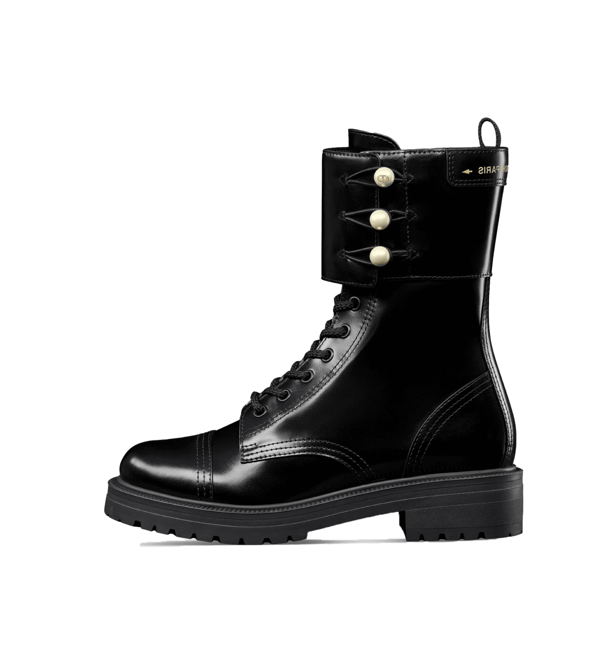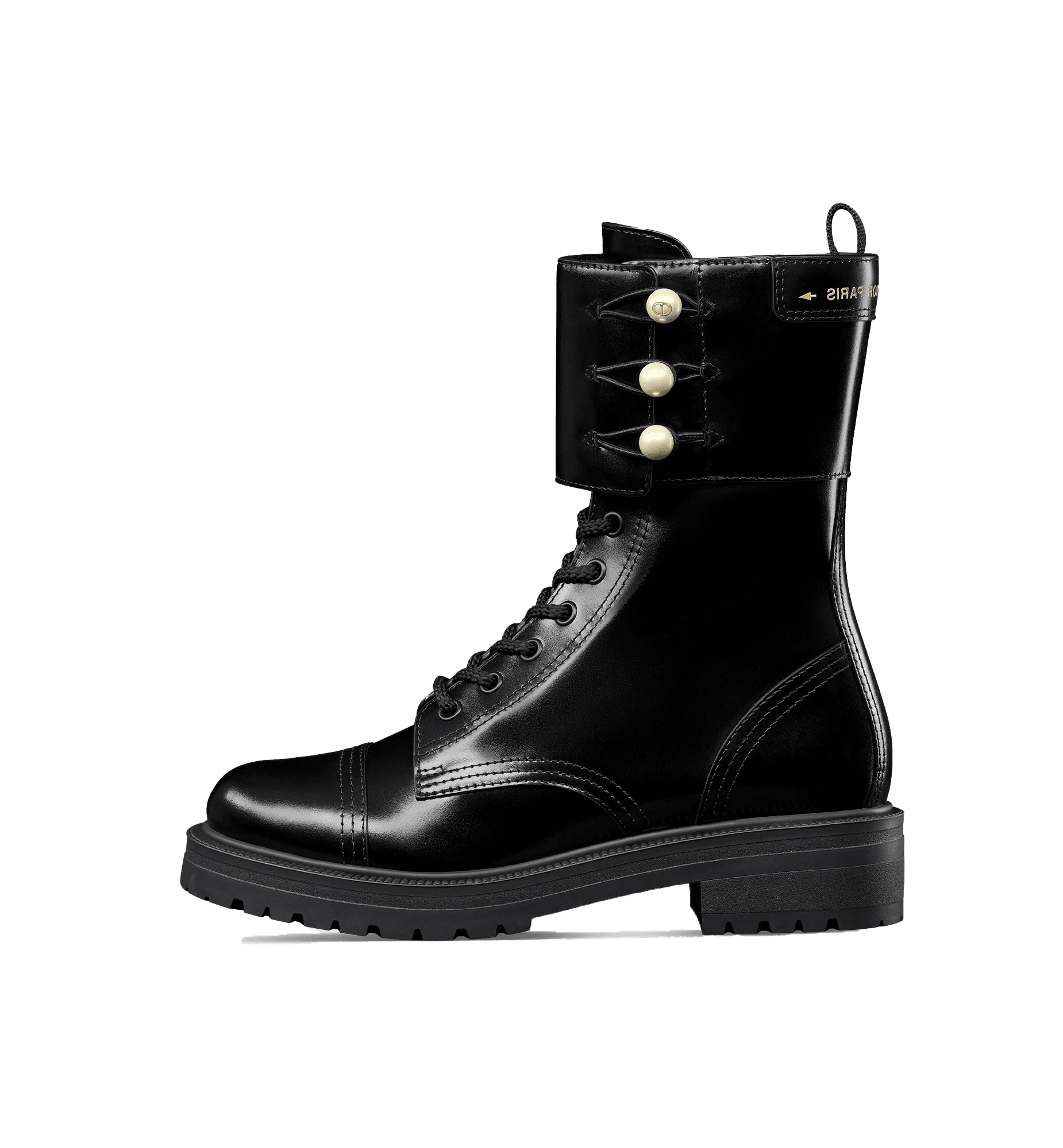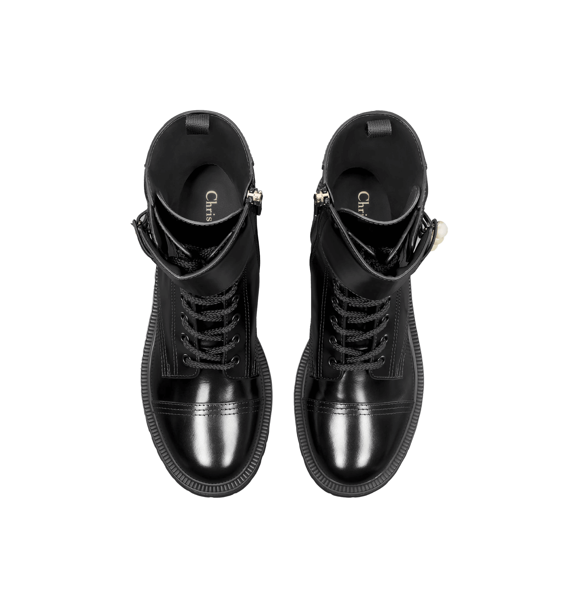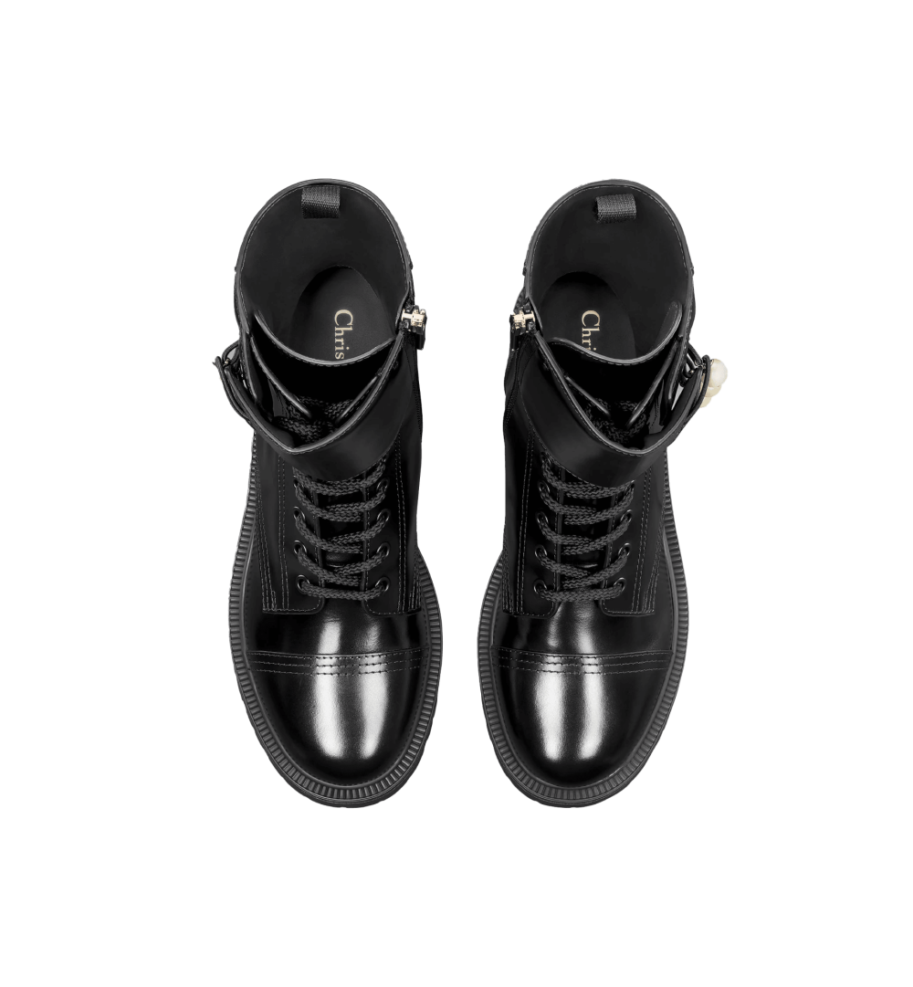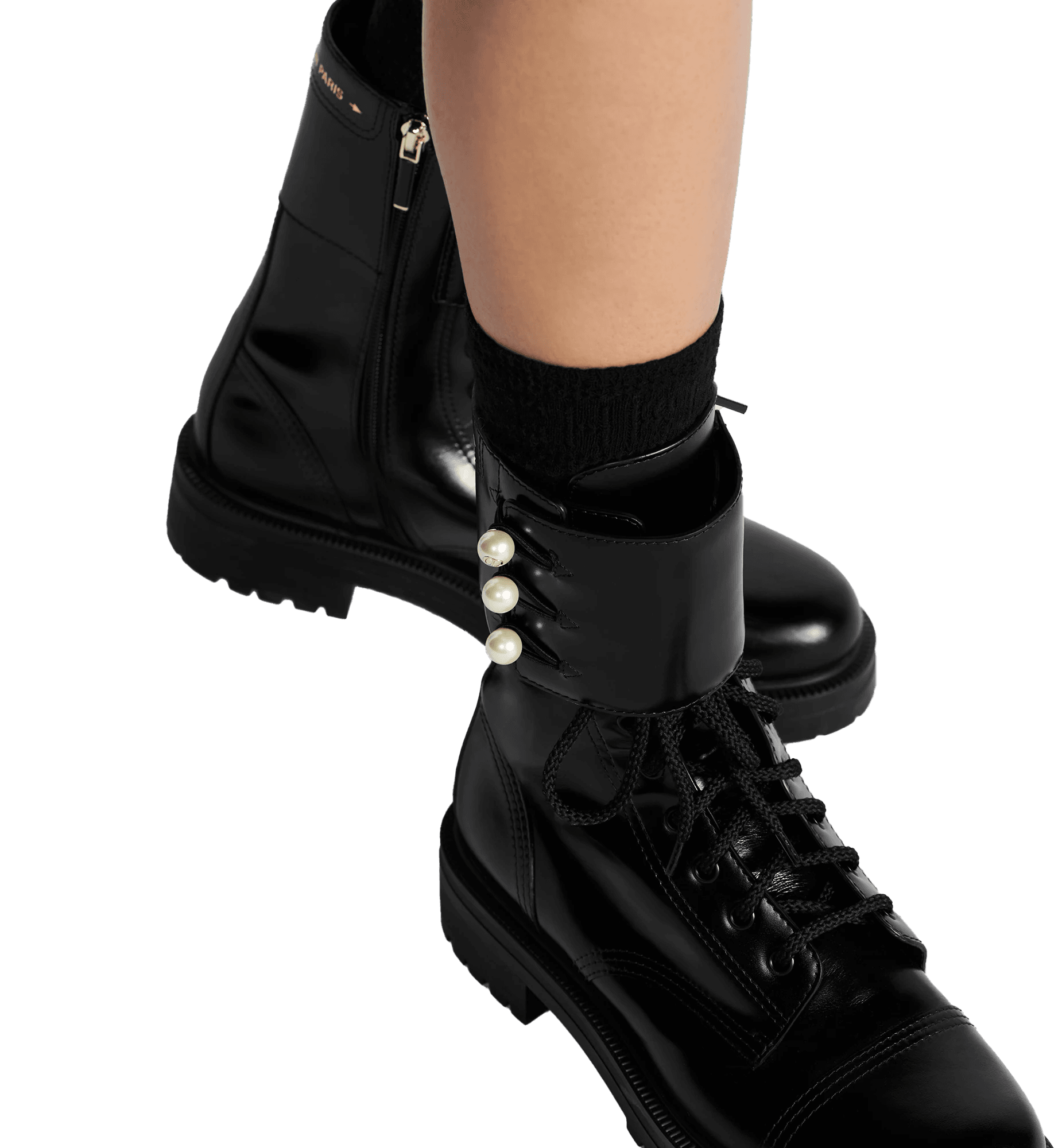 New for the Cruise 2024 collection, the D-Strike ankle boot adds couture details to a bold silhouette. Presented in black matte calfskin, the style stands out with a wide band adorned with functional white resin pearls, inspired by the iconic Dior Tribales earrings. A gold-tone CD signature on the top resin pearl and rear Christian Dior Paris signature as well as an ultra-lightweight EVA sole complete the modern ankle boot.