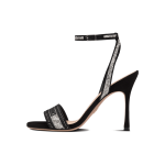 The Dway heeled sandal elegantly reimagines one of the House’s hallmark creations. Crafted in black embroidered cotton adorned with silver-tone strass, it is distinguished by an array of delicate straps revealing an embroidered ‘CHRISTIAN DIOR’ signature on the upper. Completed by a 10 cm (4) heel, the exceptional shoe is ideal for formal attire.