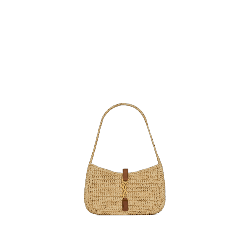 - NATURAL RAFFIA, CALFSKIN LEATHER, BRASS