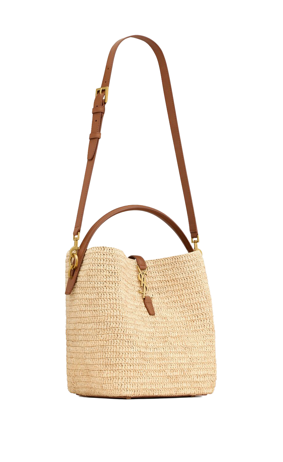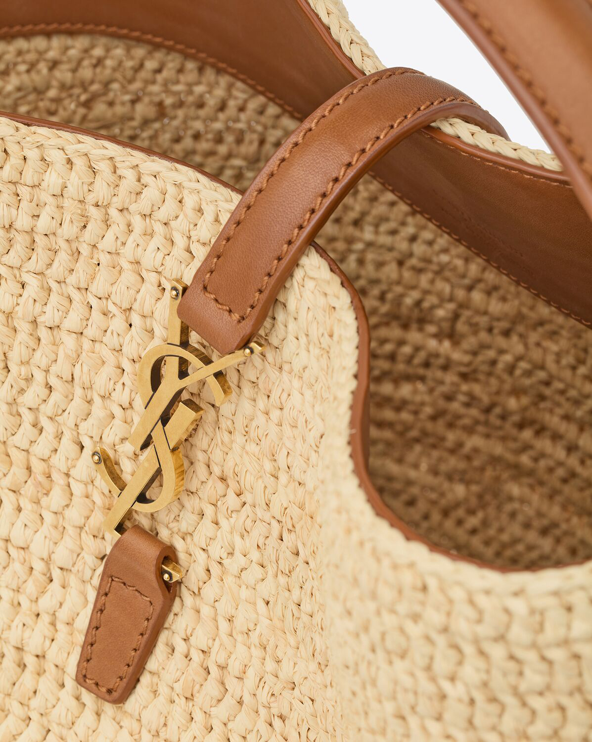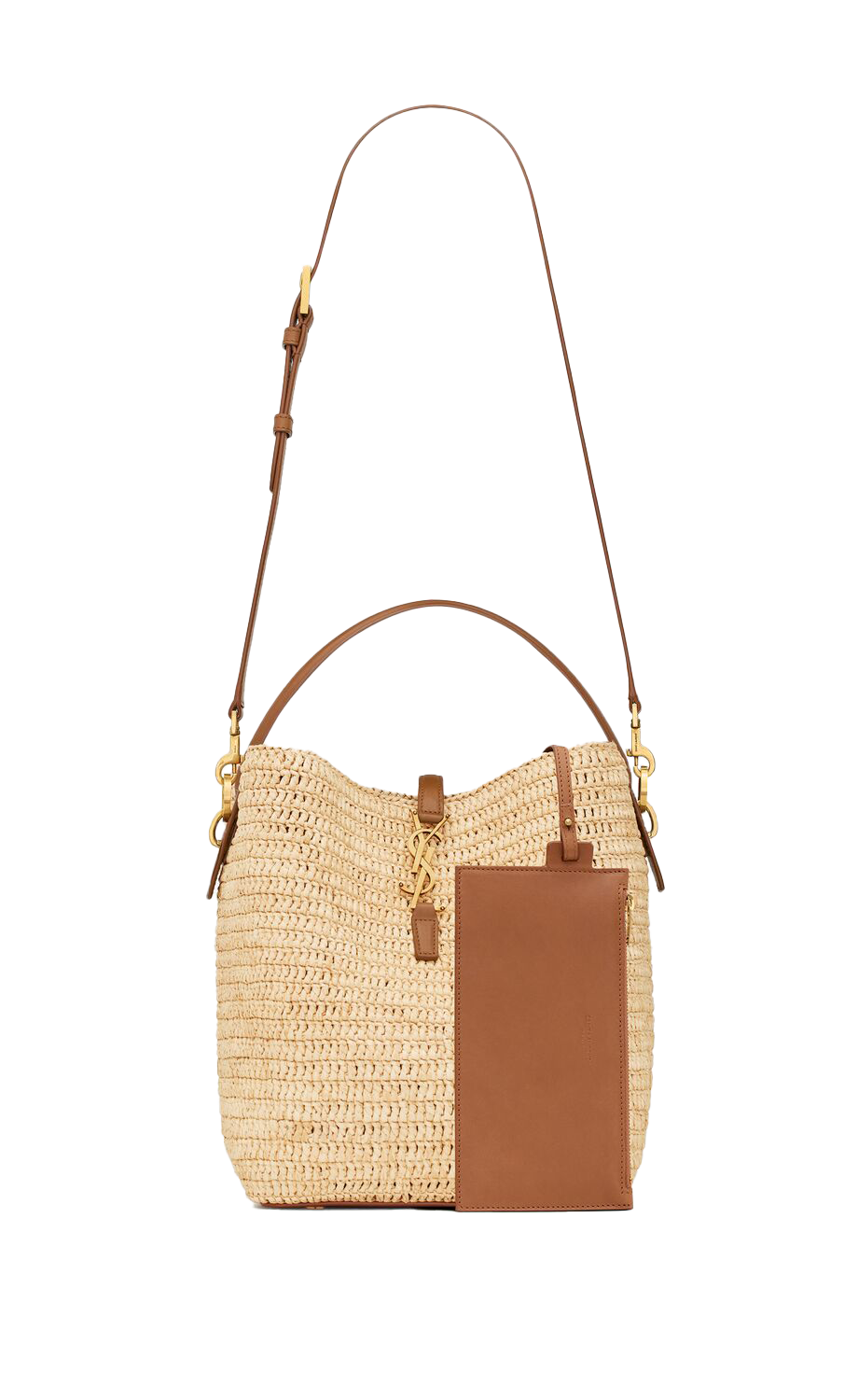 BUCKET BAG FEATURING A CASSANDRE HOOK CLOSURE, MADE WITH NATURAL WOVEN RAFFIA AND VEGETABLE-TANNED LEATHER.