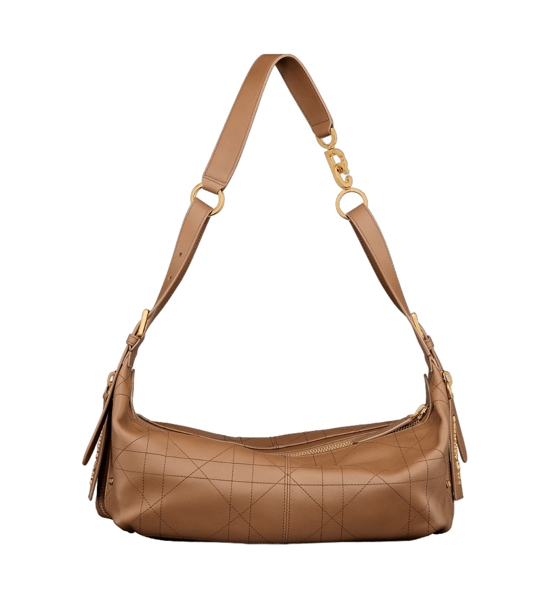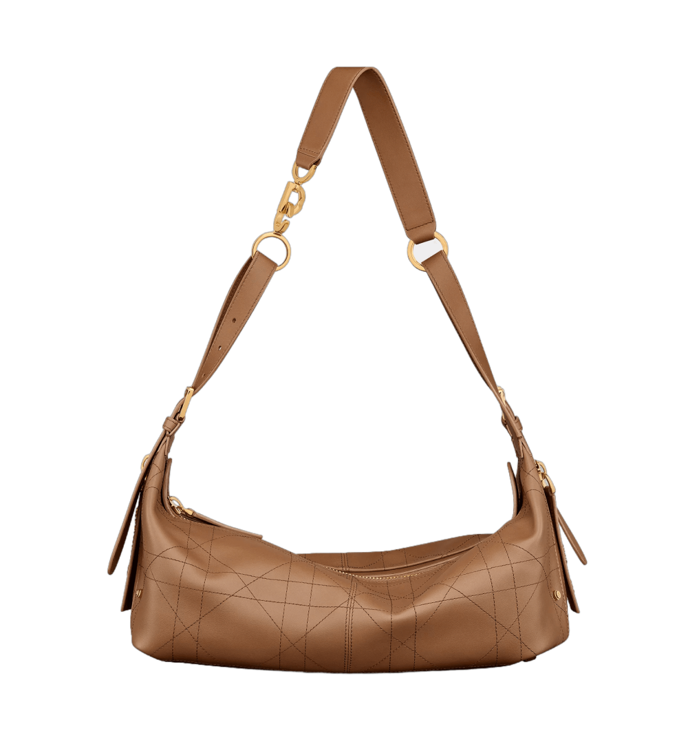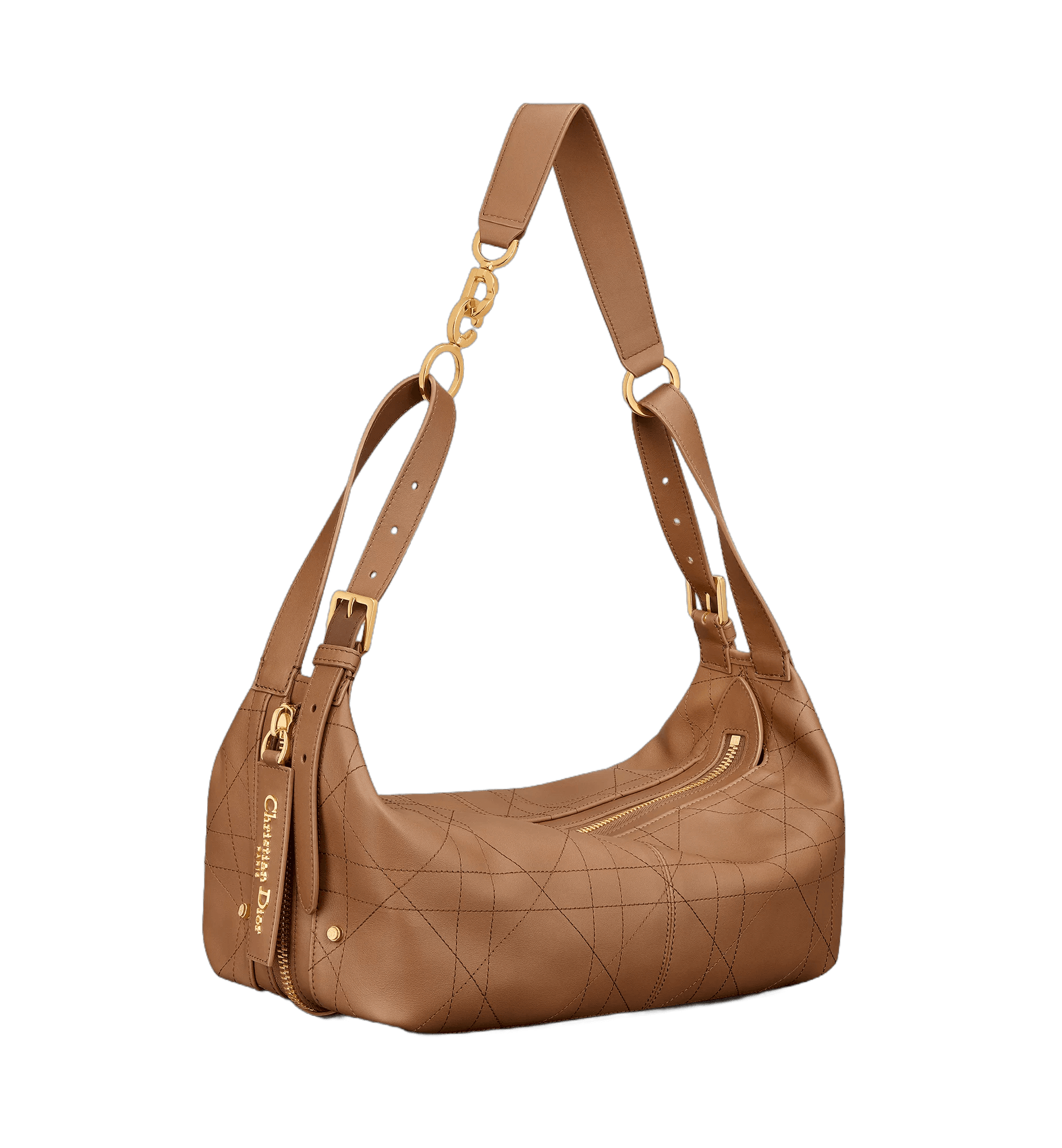 The D-Journey bag offers a new take on the hobo silhouette with a modern supple design. The style is crafted in light gold-tone vintage smooth calfskin with Flat Macrocannage topstitching in an interpretation of the House’s iconic motif. The main compartment is completed by a zip pocket, while two decorative side pockets showcase a large leather pull with the Christian Dior Paris signature. Featuring adjustable leather top handles and a leather strap, the medium D-Journey bag can be carried by hand, worn over the shoulder or crossbody as a daily companion.