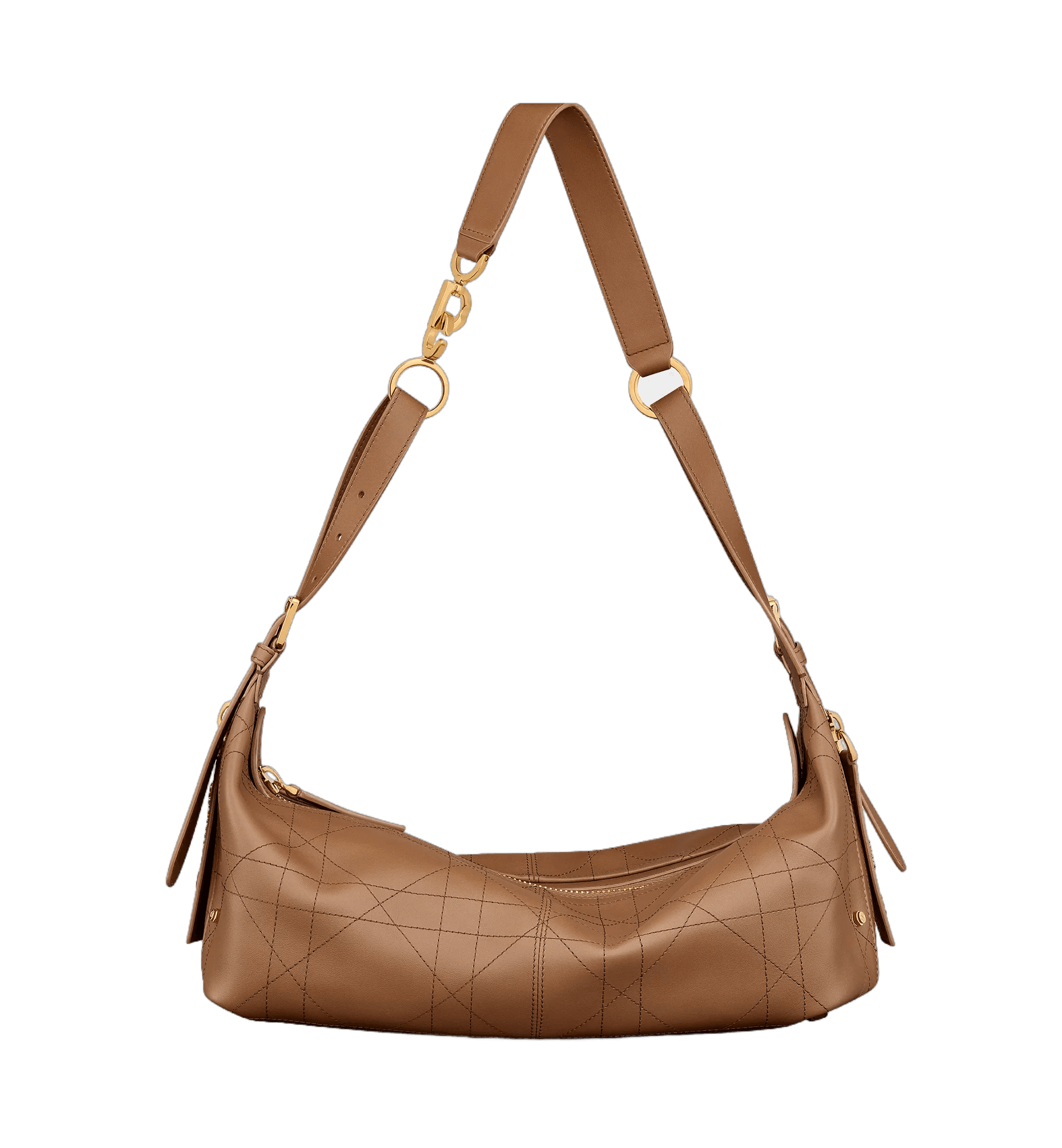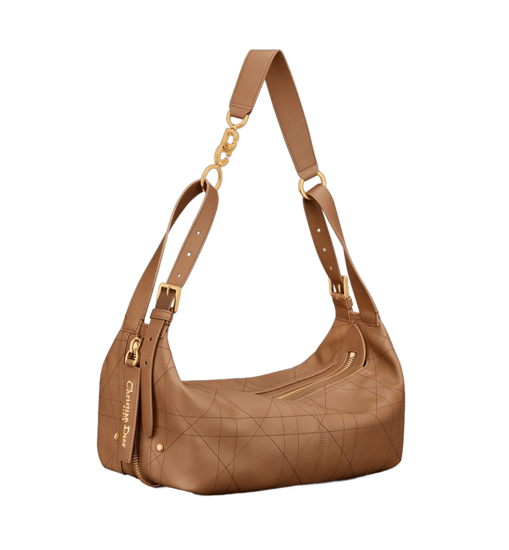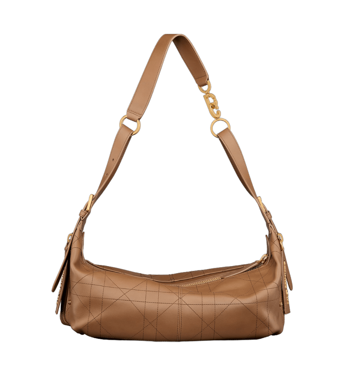 The D-Journey bag offers a new take on the hobo silhouette with a modern supple design. The style is crafted in light gold-tone vintage smooth calfskin with Flat Macrocannage topstitching in an interpretation of the House’s iconic motif. The main compartment is completed by a zip pocket, while two decorative side pockets showcase a large leather pull with the Christian Dior Paris signature. Featuring adjustable leather top handles and a leather strap, the medium D-Journey bag can be carried by hand, worn over the shoulder or crossbody as a daily companion.