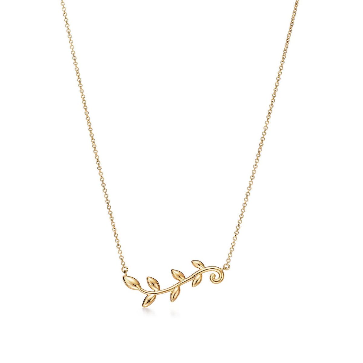 A beautiful tribute to the olive branch, a symbol of peace and abundance. Pendant in 18k gold, 18″ long. Original designs copyrighted by Paloma Picasso.