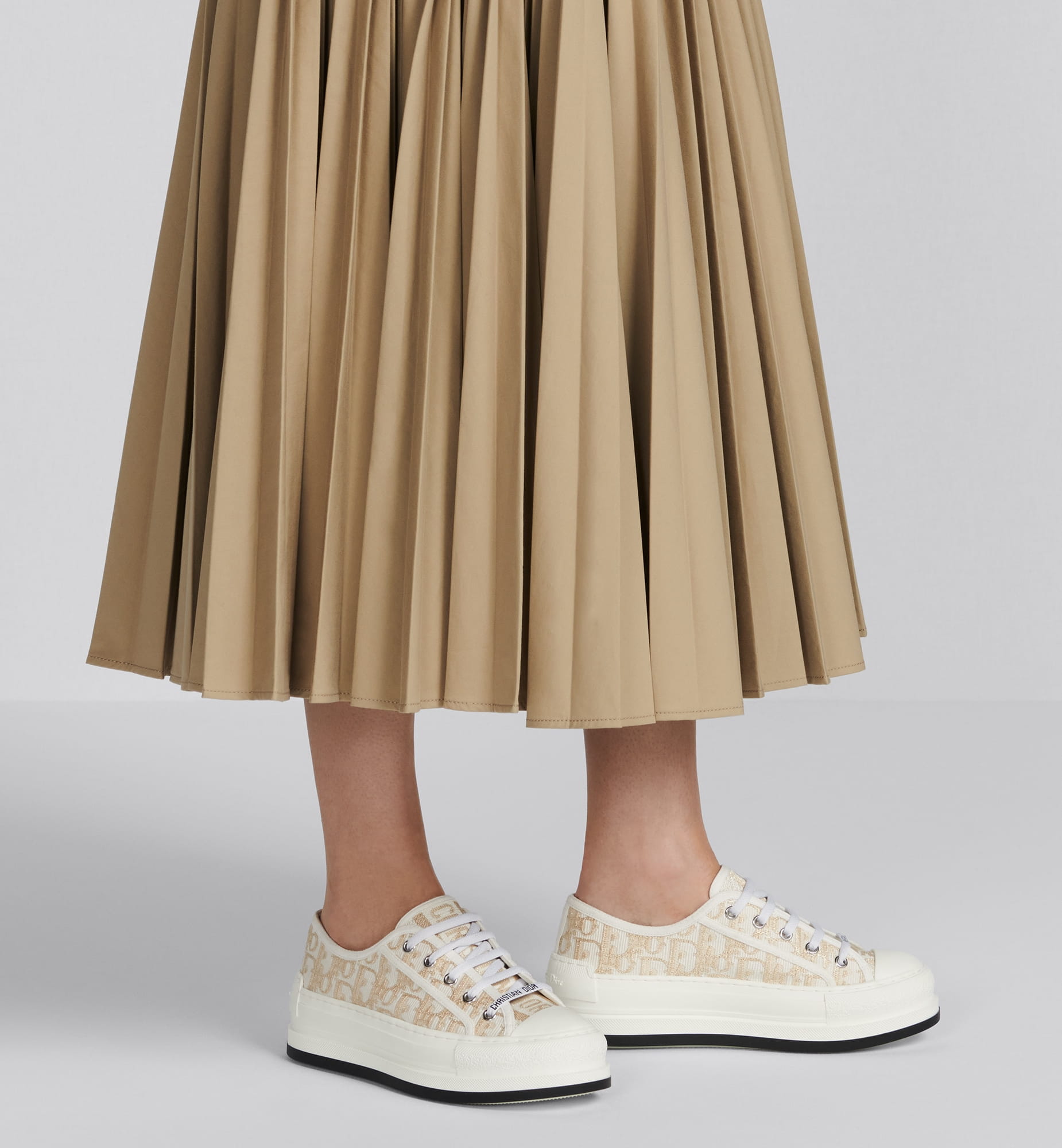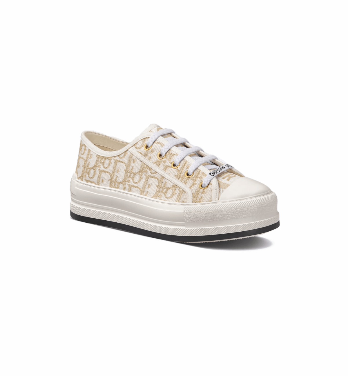 The Walk’n’Dior platform sneaker enhances the line with a modern creation. The Dior Oblique embroidered cotton upper is embellished with metallic gold-tone thread and features a comfortable and ultra-lightweight thick sole, tongue and Christian Dior Paris laces. The sneaker will add a contemporary touch to any laid-back look.