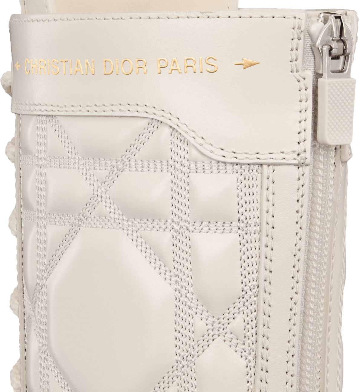 New for the Cruise 2024 collection, the D-Unit ankle boot is a bold, modern creation. Crafted in white calfskin, it is enhanced by the Cannage motif with a quilted effect achieved by a high frequency technique. The gold-tone Christian Dior Paris signature on the side and ultra-lightweight EVA sole complete the modern ankle boot.