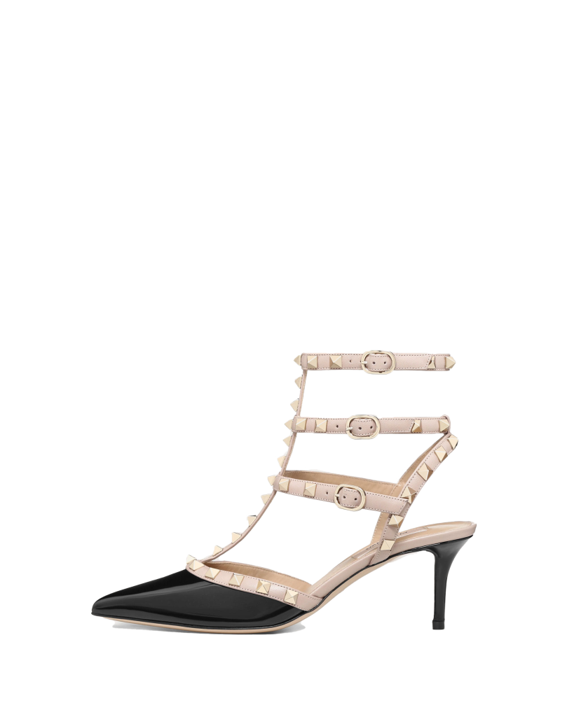 Rockstud Ankle Strap Patent-Leather Pump With Tonal Studs 100 MM
