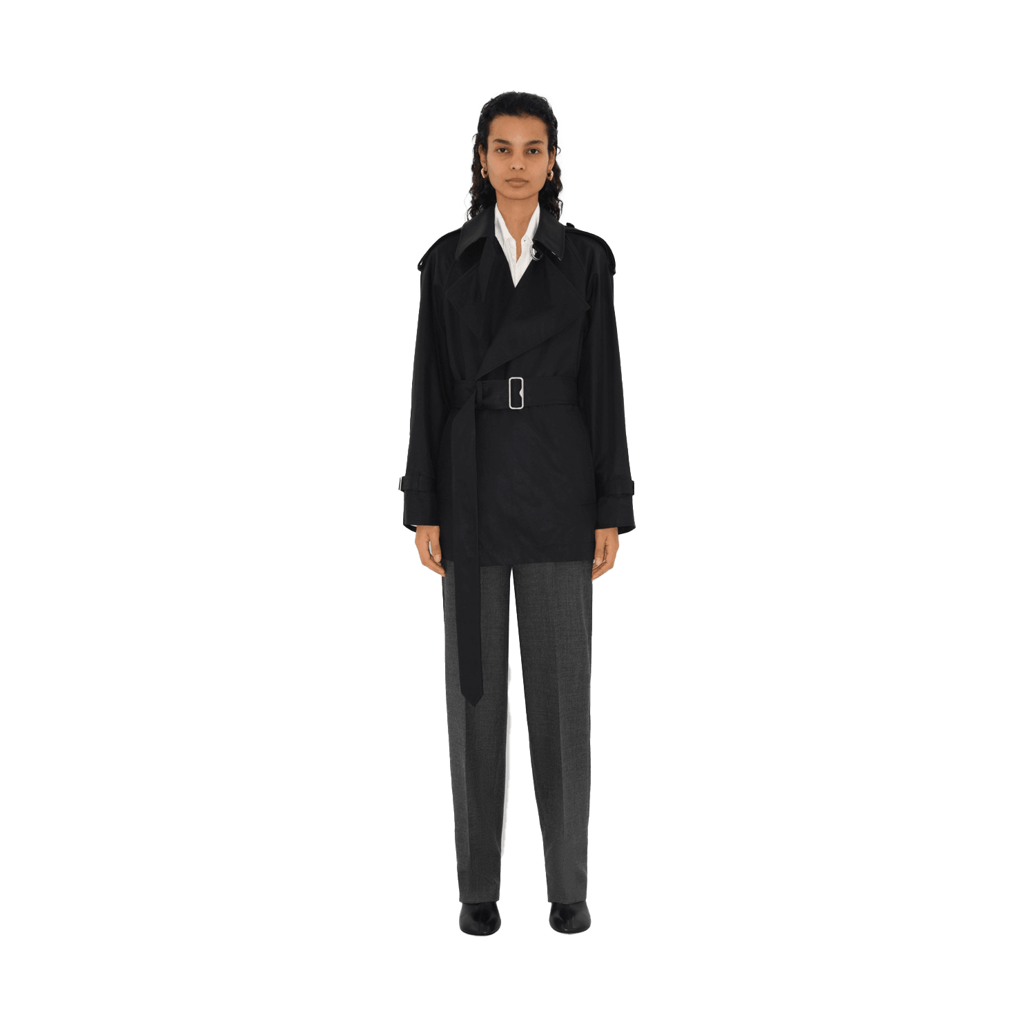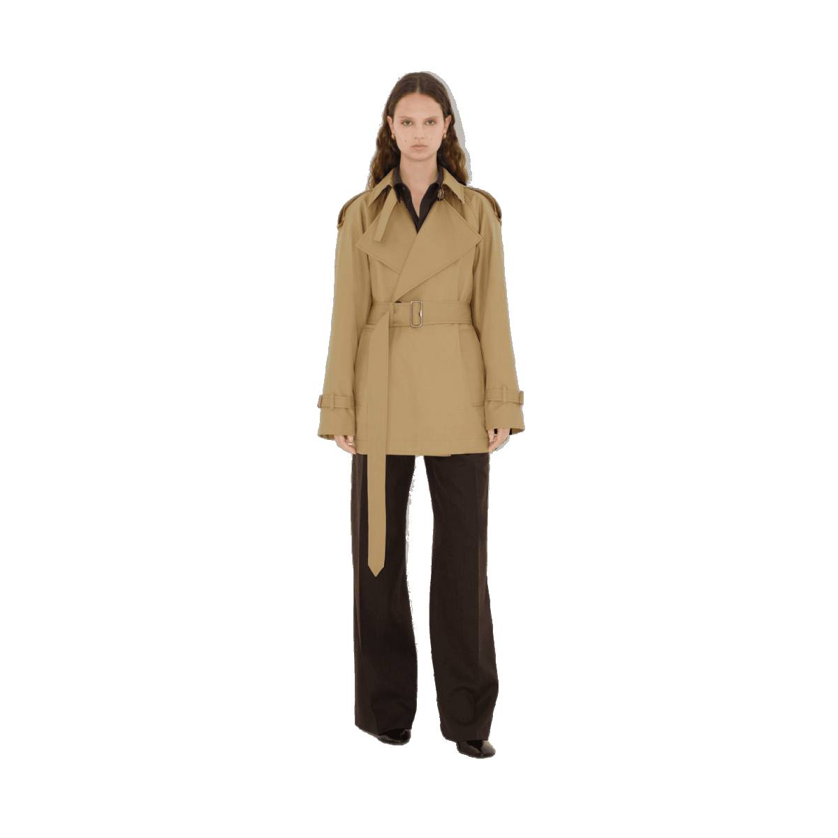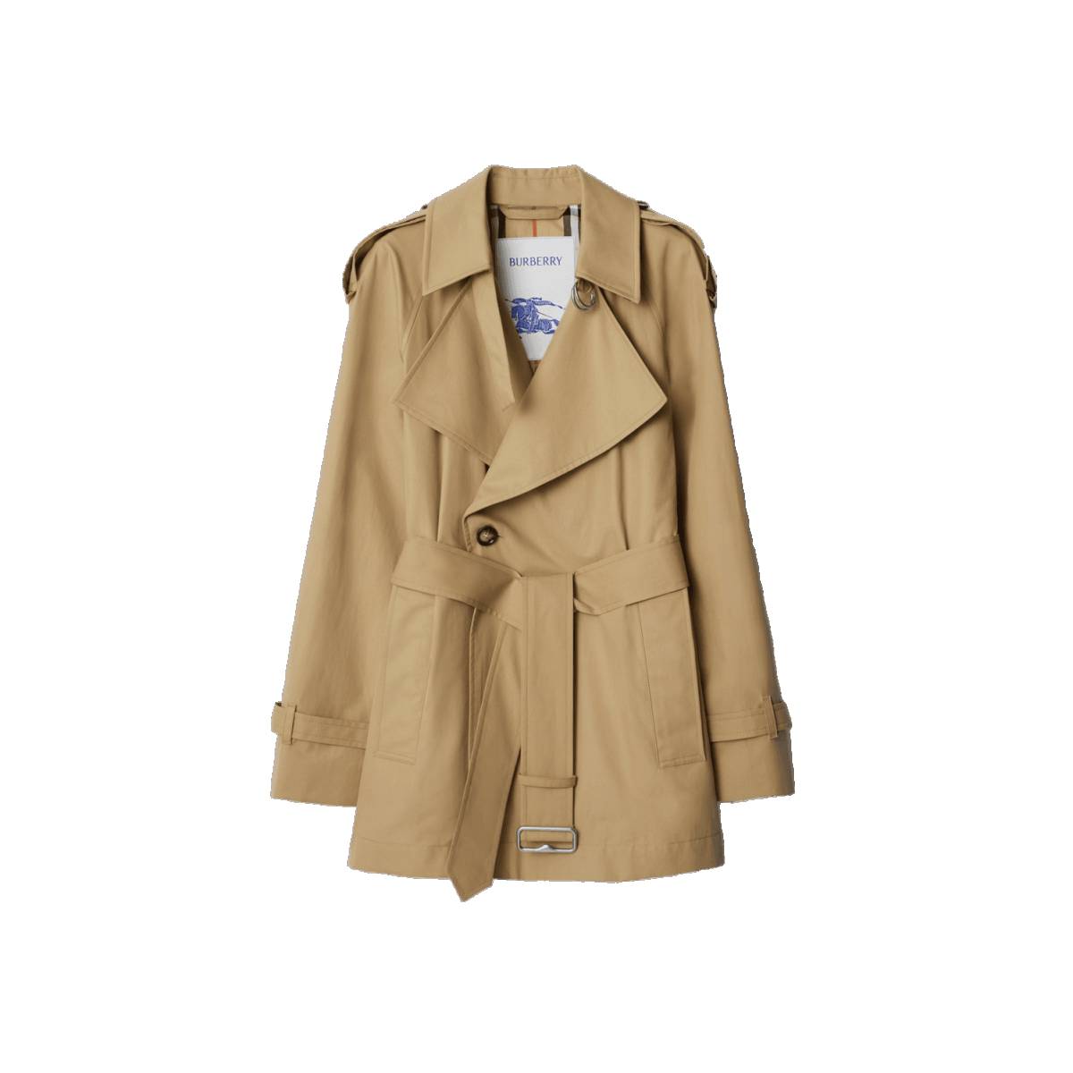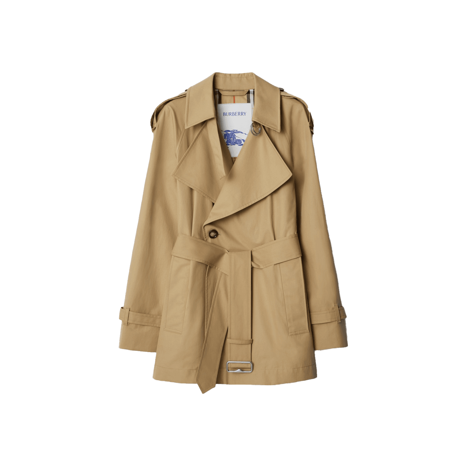 - Inspired by our heritage styles, a trench jacket made from Italian-woven cotton gabardine. The design features wide lapels, exaggerated epaulettes and is partially lined in Burberry Check. Cut to a regular fit with a belt to adjust the silhouette.
