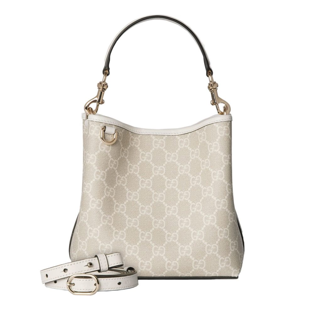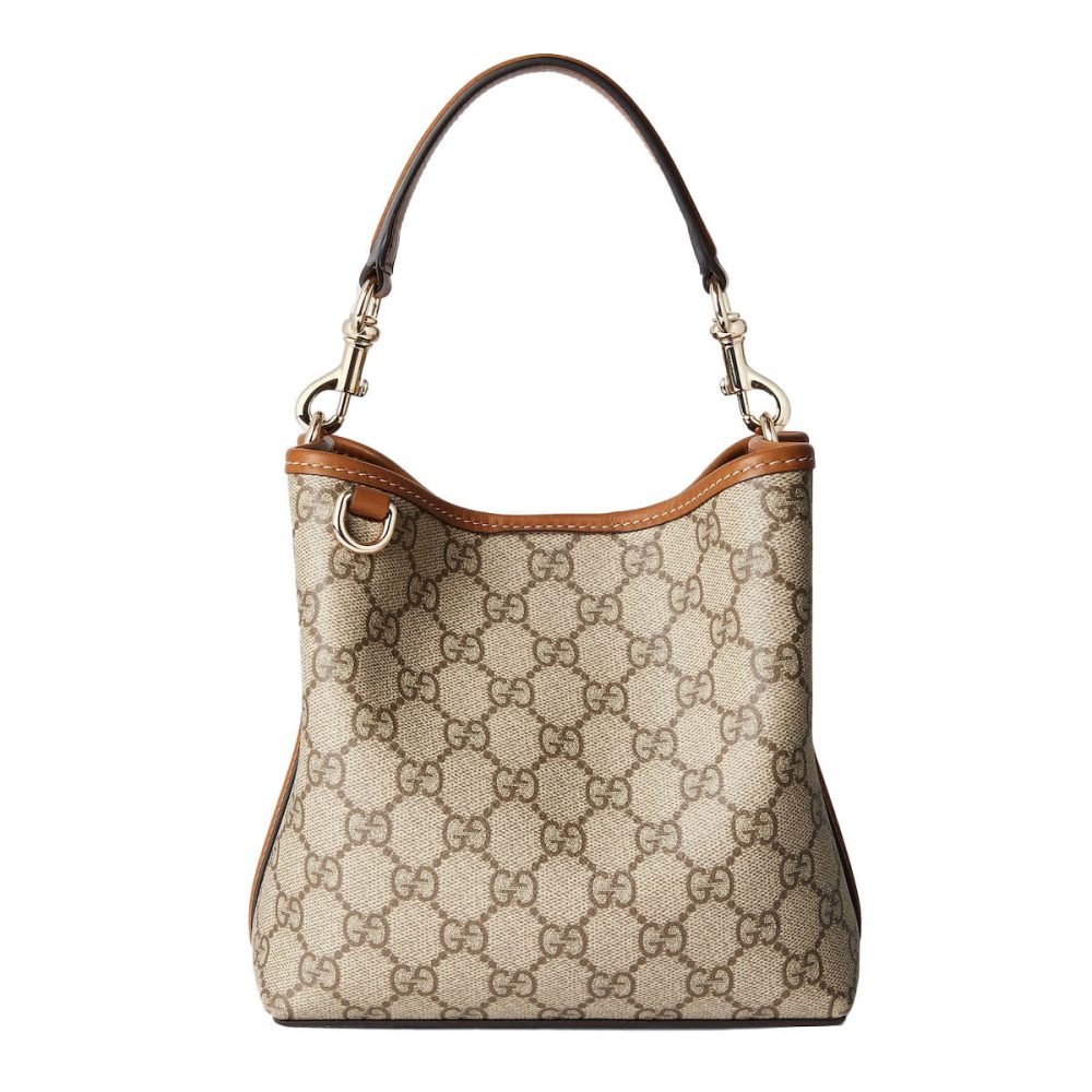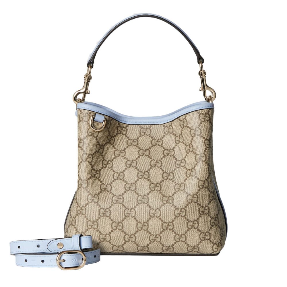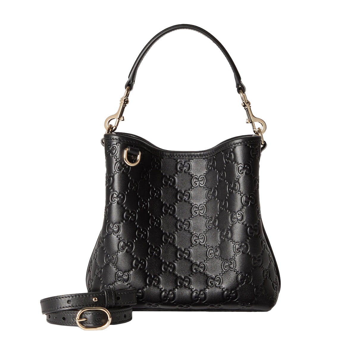 The new GG Emblem collection reinterprets the House’s history of elegance and craftsmanship. This bucket bag highlights functional design with an interior compartment.