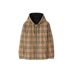 - A lightweight jacket reversing from the Burberry Check to a solid colour with a logo appliqué. The hooded style is cut to a relaxed fit.