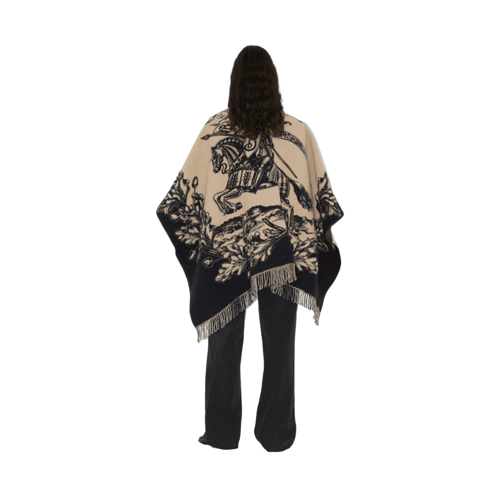 - An Italian-made cape in jacquard-woven wool, reversing from our Equestrian Knight design to Burberry Check. The style is trimmed with supple leather.