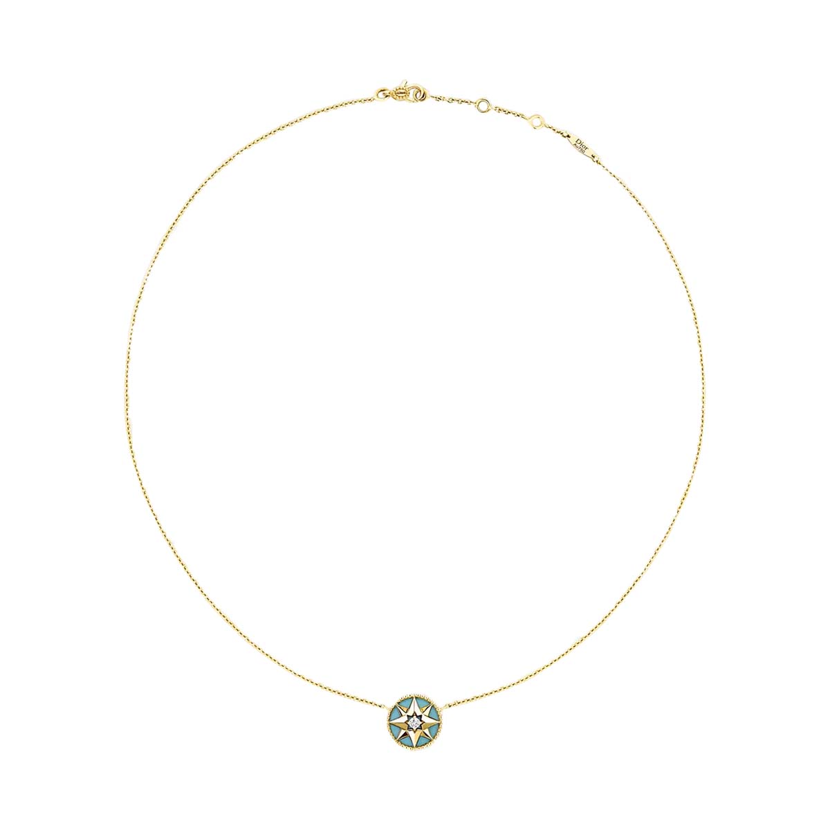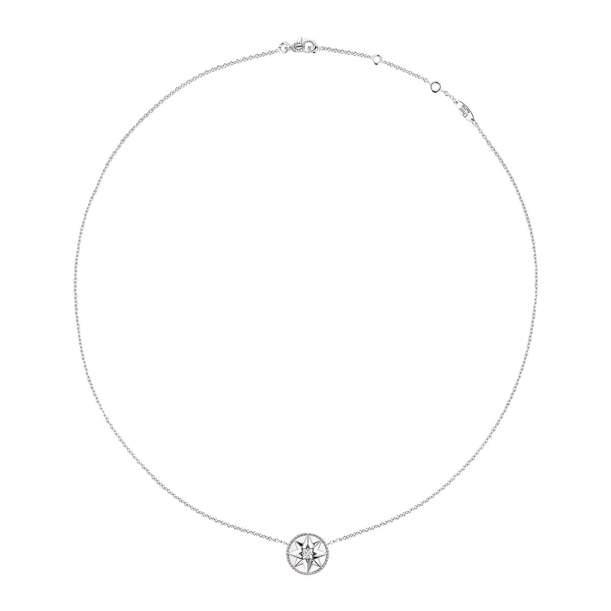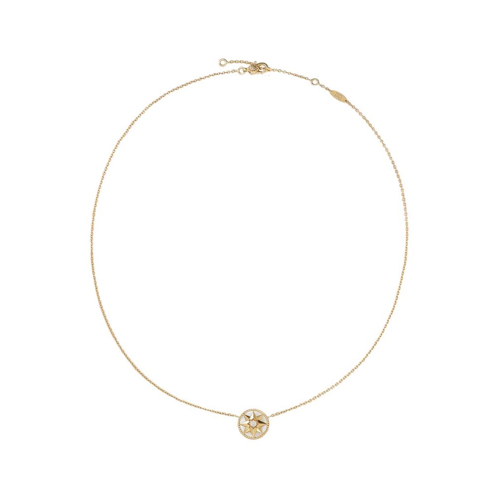 Victoire de Castellane reinterprets Mr. Dior’s lucky star in the form of a wind rose, an eight-pointed star design. A ring of beading encircles the motif, which turns to switch between the gemstone or wind rose sides.