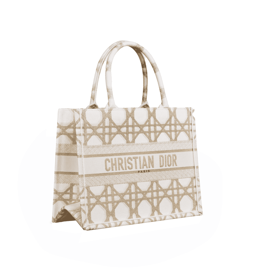 Introduced by Maria Grazia Chiuri, Creative Director of Christian Dior, the Dior Book Tote has become a staple of the Dior aesthetic. Designed to hold all the daily essentials, the style is fully embroidered with a gold-tone Macrocannage motif and is further adorned with the Christian Dior Paris signature on the front. The medium tote exemplifies the House’s signature savoir-faire and may be carried by hand or worn over the shoulder.