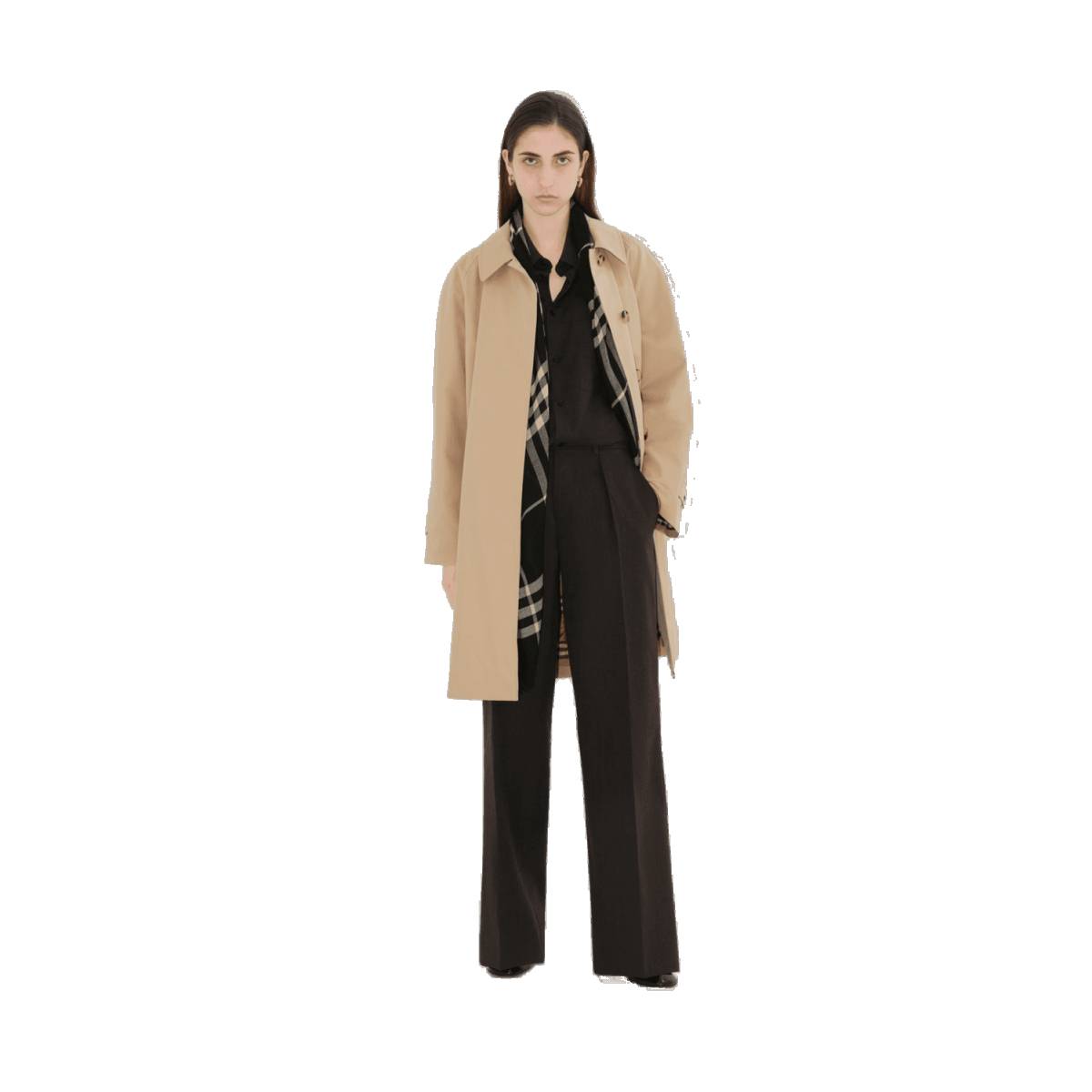 - The original Burberry car coat, made in England from shower-resistant cotton gabardine. Inside is Burberry Check cotton, used to line our coats since the 1920s. Part of the Heritage Collection, the Camden is cut to a regular fit with raglan sleeves.