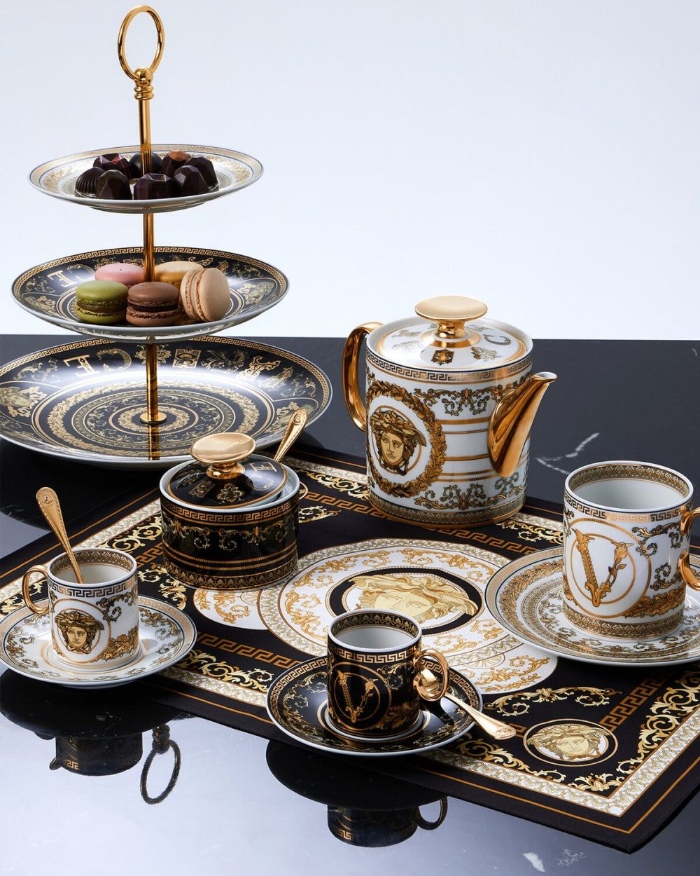 Crafted in exceptional porcelain, this coffee cup and saucer set add a touch of luxury to your morning ritual. The set features the iconic Barocco V and stylized acanthus leaves – fused together in tones of black, white and gold.